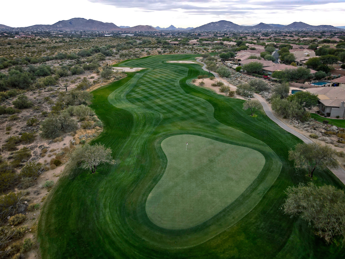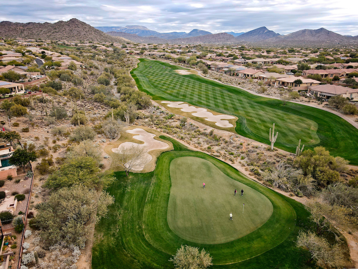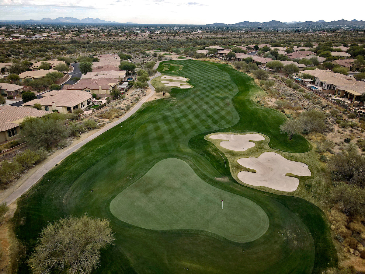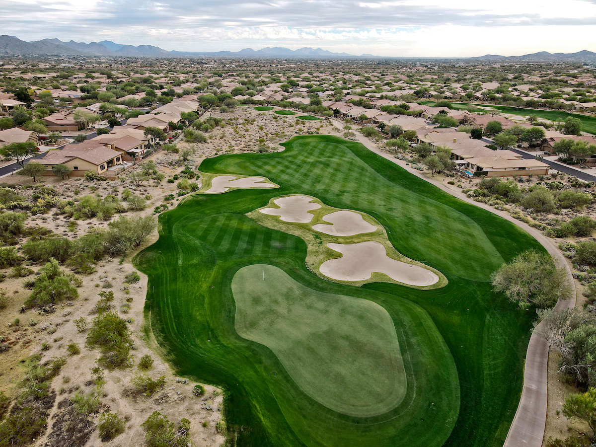 The Ironwood Course, which opened in January 2004 as a Phoenix private golf course, encompasses seven water features, intimidating bunkers, and a backdrop of a mountain mesa. This is a classic high-risk/high-reward design and the more challenging of the two Anthem, Arizona golf courses. Post-round conversation often focuses on “Anthem Alley,” the 10th through 12th uniquely crafted water holes that tend to drive up scores.
