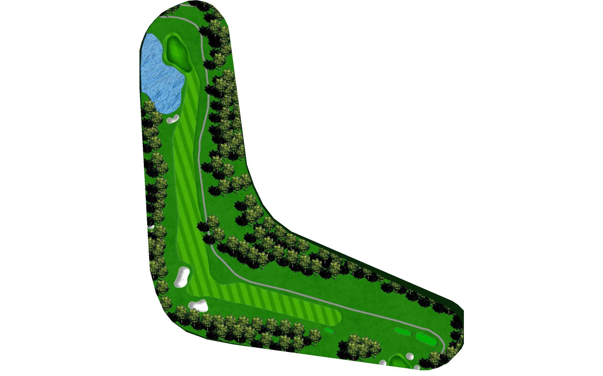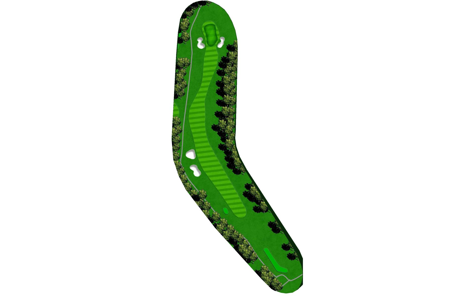 A dogleg right, long par 4. Avoid the creek that runs along the left side of this hole.