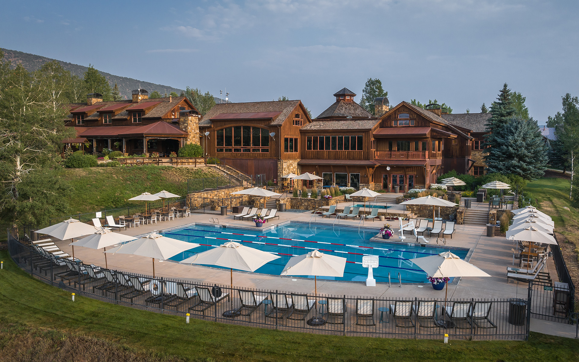 Escape the ordinary at Aspen Glen Club's inviting pool oasis. Our recently renovated pool area offers the ultimate in relaxation and recreation. Enjoy refreshing laps in our heated pool, unwind in the soothing hot tub, or bask in the sun on our spacious deck. With comfortable seating, ample shade, and a convenient poolside bar, your days spent poolside will be unforgettable.