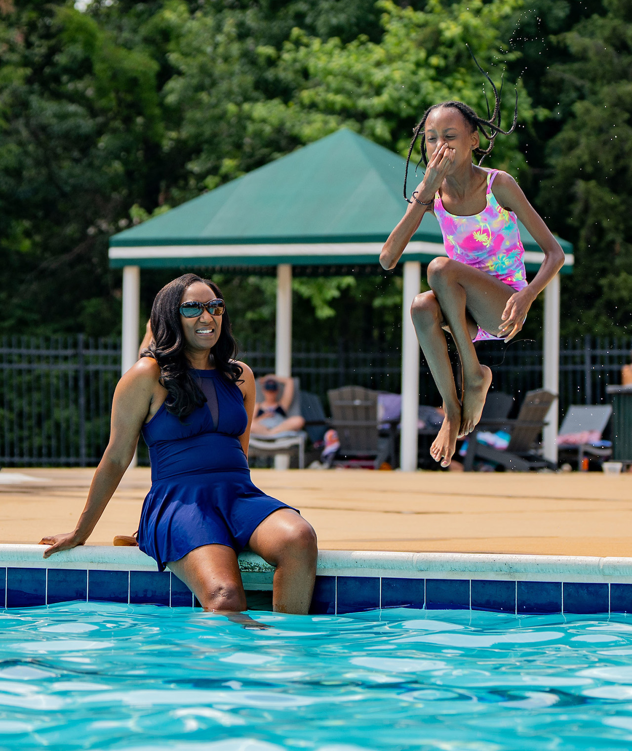 Members at Belmont can utilize any of our three pools (competition, free-form or children), as well as get involved with the Belmont Sharks swim team and aquatics programs for all ages and swimming abilities.
