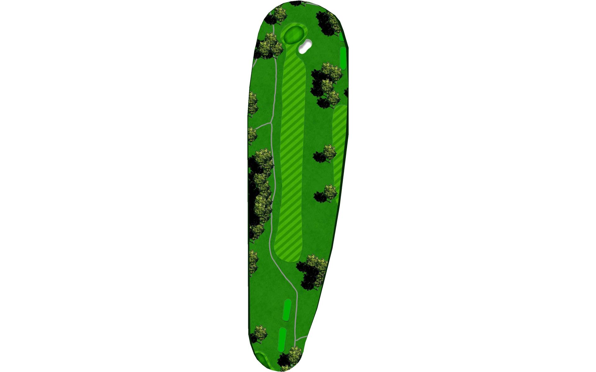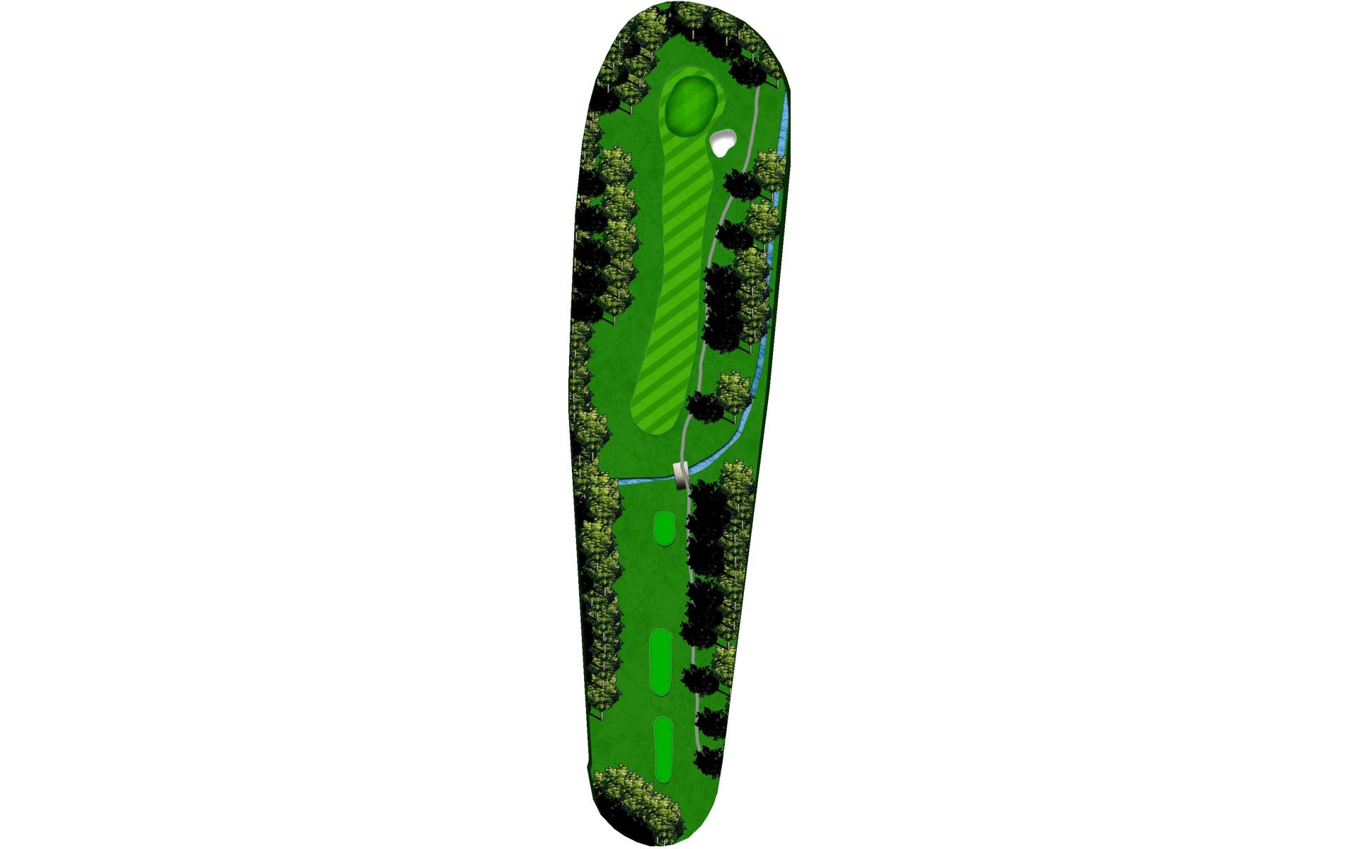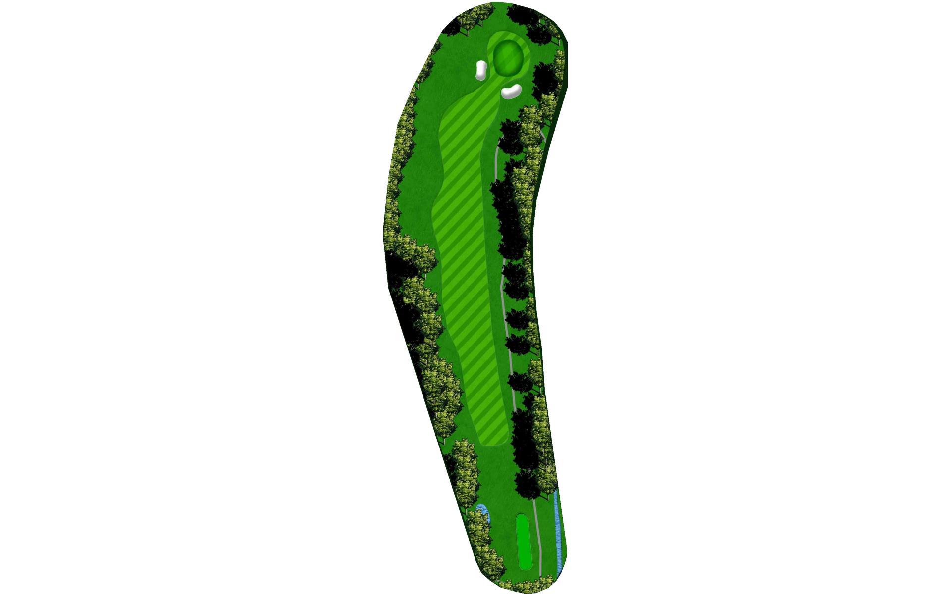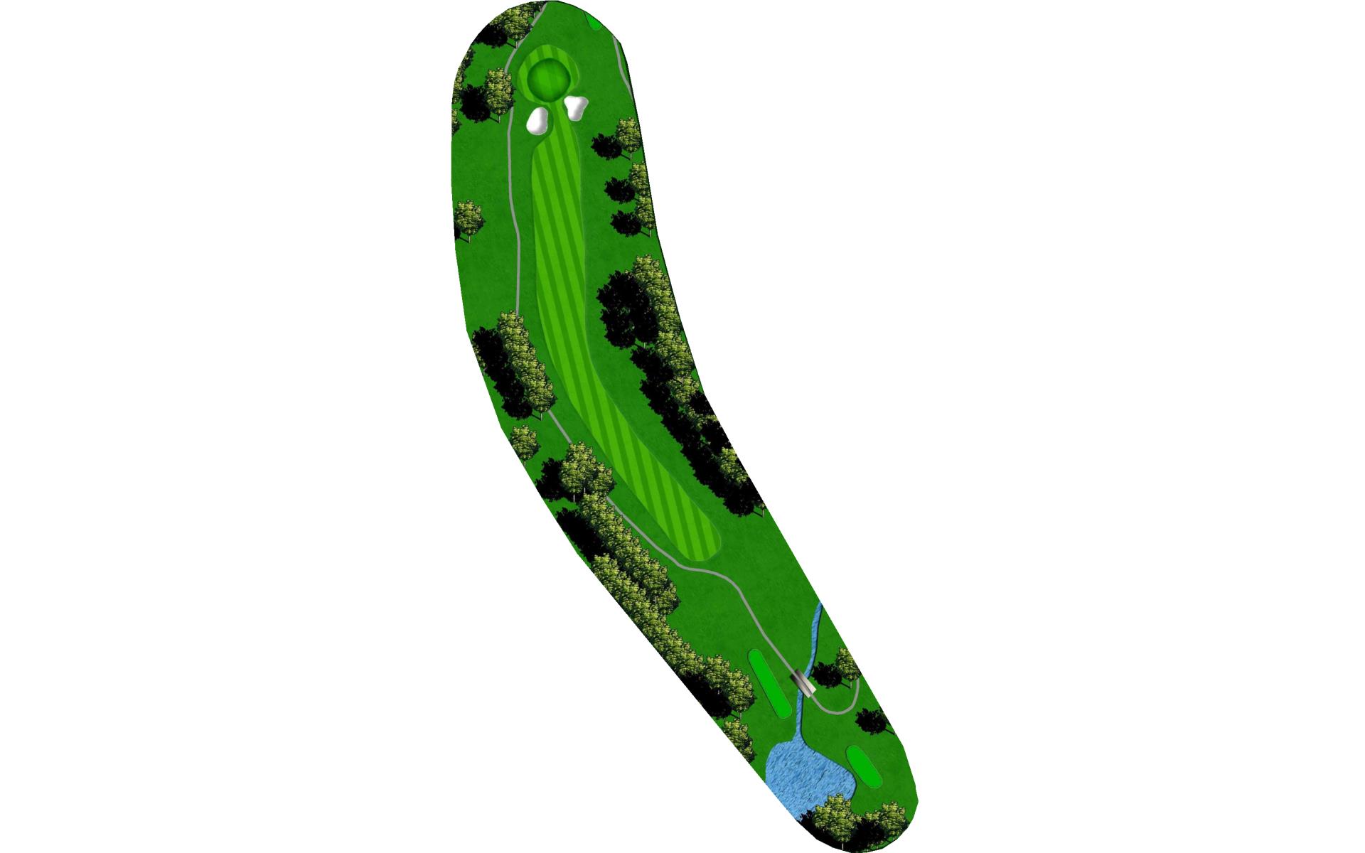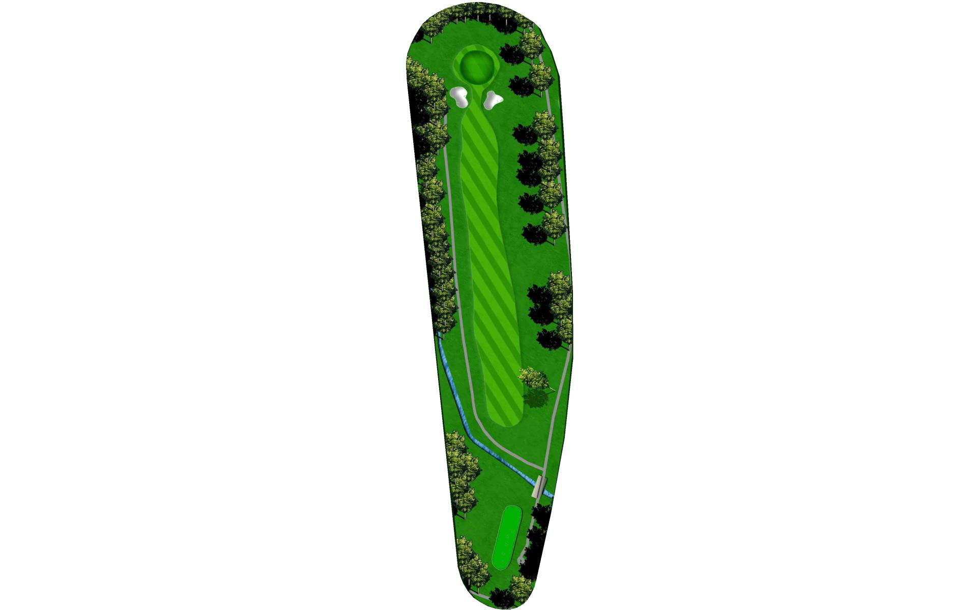 Number four for some is reachable but it has to be done with such precision a drive that leave us with a full swing into the green is the percentage play. With no real trouble around or behind, short of the green on this hole will put a not so friendly number on a score card. This green slope from back right to front left almost enticing the creek in front to grab a golf ball just a little short. Middle of the green on the good side of the pin will make a much better number.