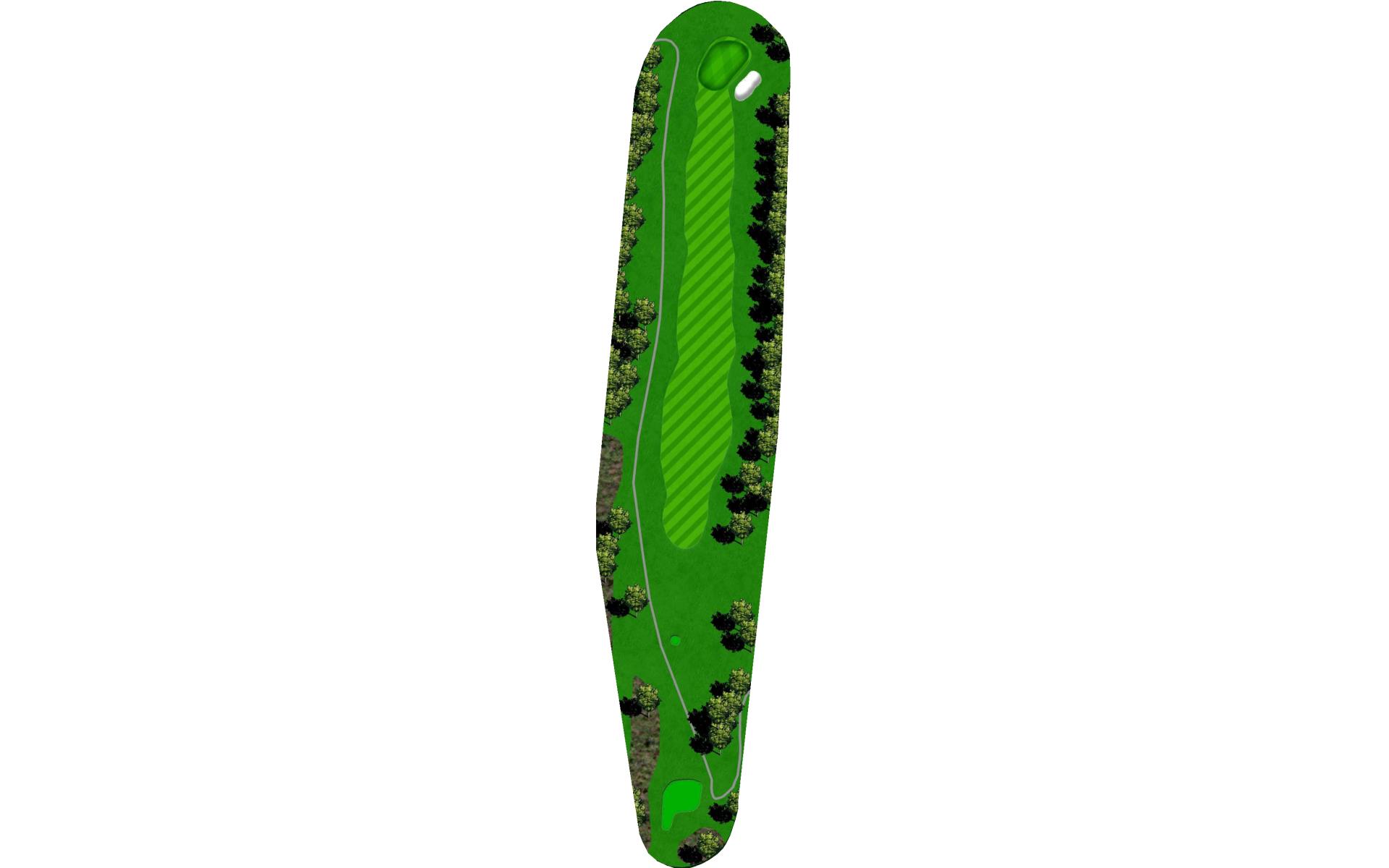 Big drivers can try to unleash one here. Play to the left center of the fairway off the tee of this monster par 5 for a better angle on your second shot. Big hitters can carry it over the hill of the landing area leaving them with an opportunity for reaching the green in two. The smart play is laying up to just past the dogleg for your second shot, leaving you a wedge into this green. The green has a large mound in the back of it making back pin locations difficult to putt to.