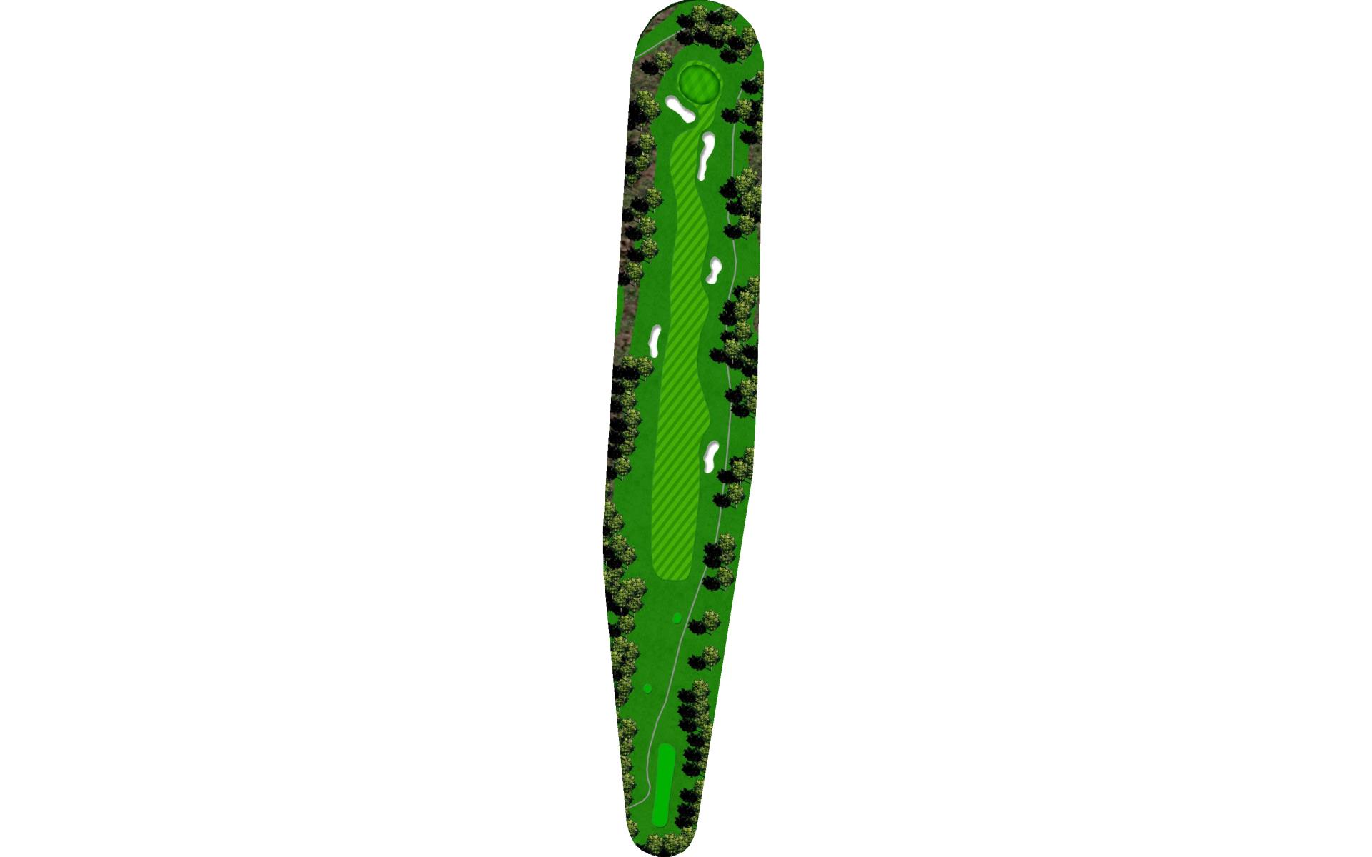 Big drivers can try to unleash one here. Play to the left-center of the fairway off the tee of this monster par 5 for a better angle on your second shot. Big hitters can carry it over the hill of the landing area leaving them with an opportunity for reaching the green in two. The smart play is laying up to just past the dogleg for your second shot, leaving you a wedge into this green. The green has a large mound in the back of it making back pin locations difficult to putt to.
