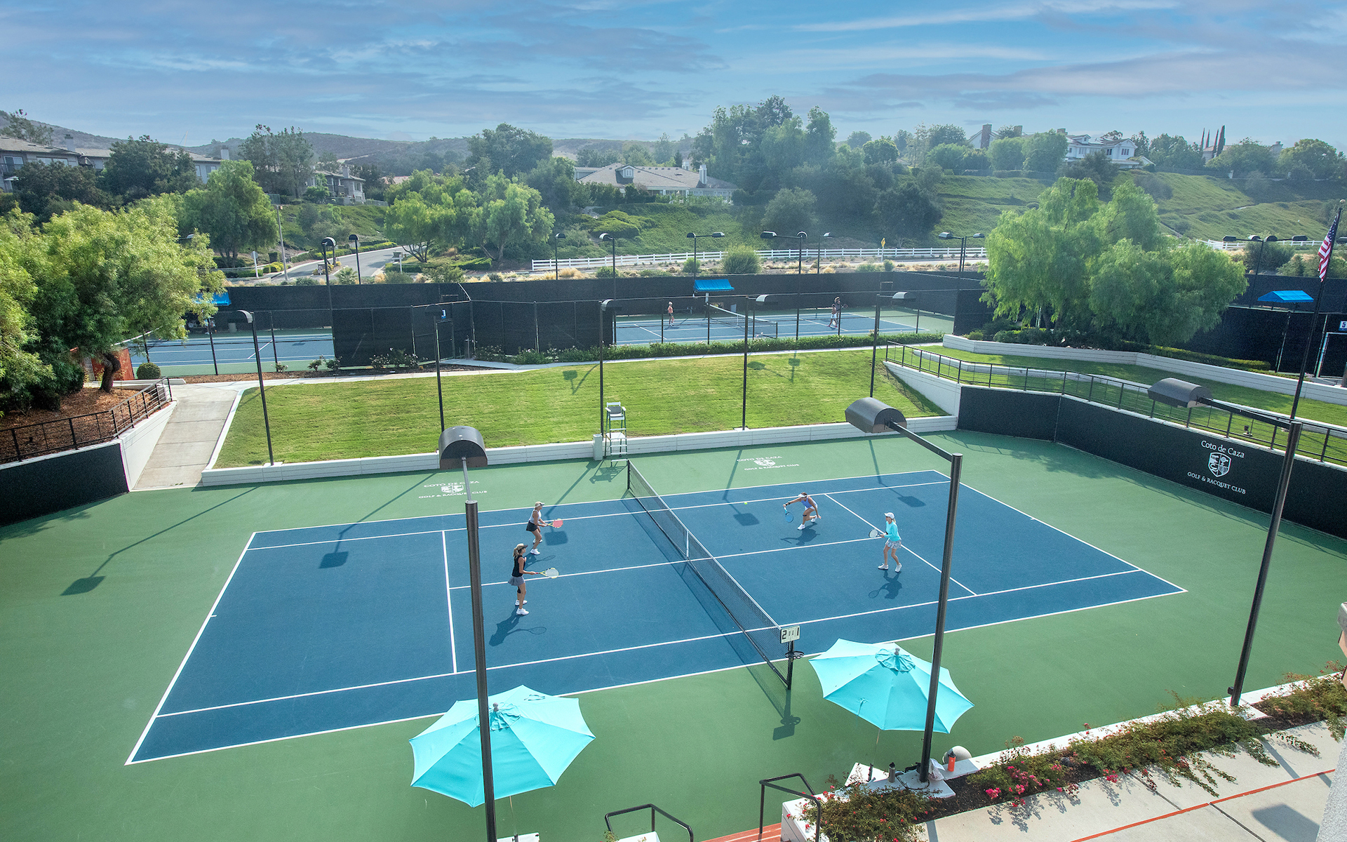 Tennis at Coto de Caza Golf & Racquet Club is a way of life. Our Orange County tennis facilities and amenities include 9 spectacular tennis courts, 4 pickleball courts, cutting-edge demo rackets available for Members to try, junior programs, an extensive adult league schedule, plus instructional clinics from our full-time staff of tennis professionals. We also feature programs such as junior programs and adult leagues as well as some of the best private tennis lessons in Orange County. It’s easy to understand why Coto de Caza has a reputation of being a superior, world-class tennis club.