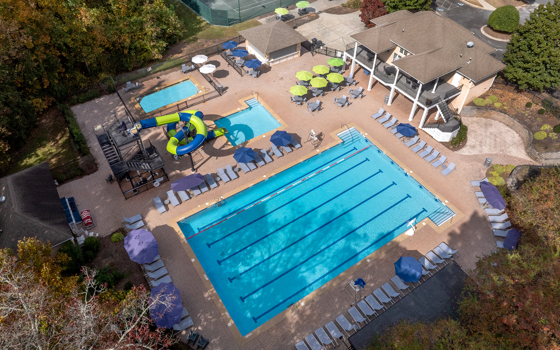 Cool down and relax at Country Club of the Carolinas' aquatic center. Our junior Olympic pool, complete with a thrilling slide and a dedicated kiddie area, offers fun for all ages. Enjoy poolside refreshments at our snack bar and bar, open daily during peak season. Your safety is our priority, with professional lifeguards on duty.