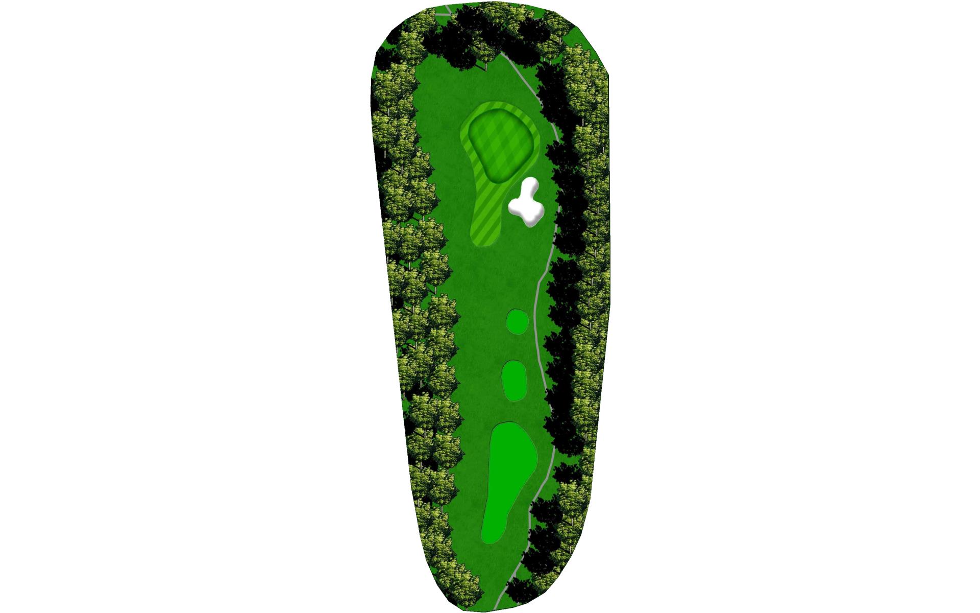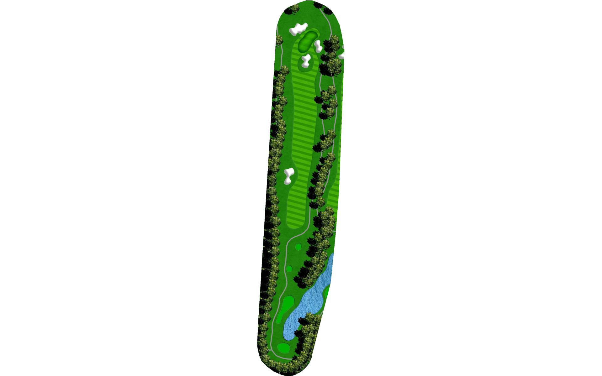 This straightaway par 3 plays over a creek. Tee shots should favor the left as there’s a severe slope on the right.