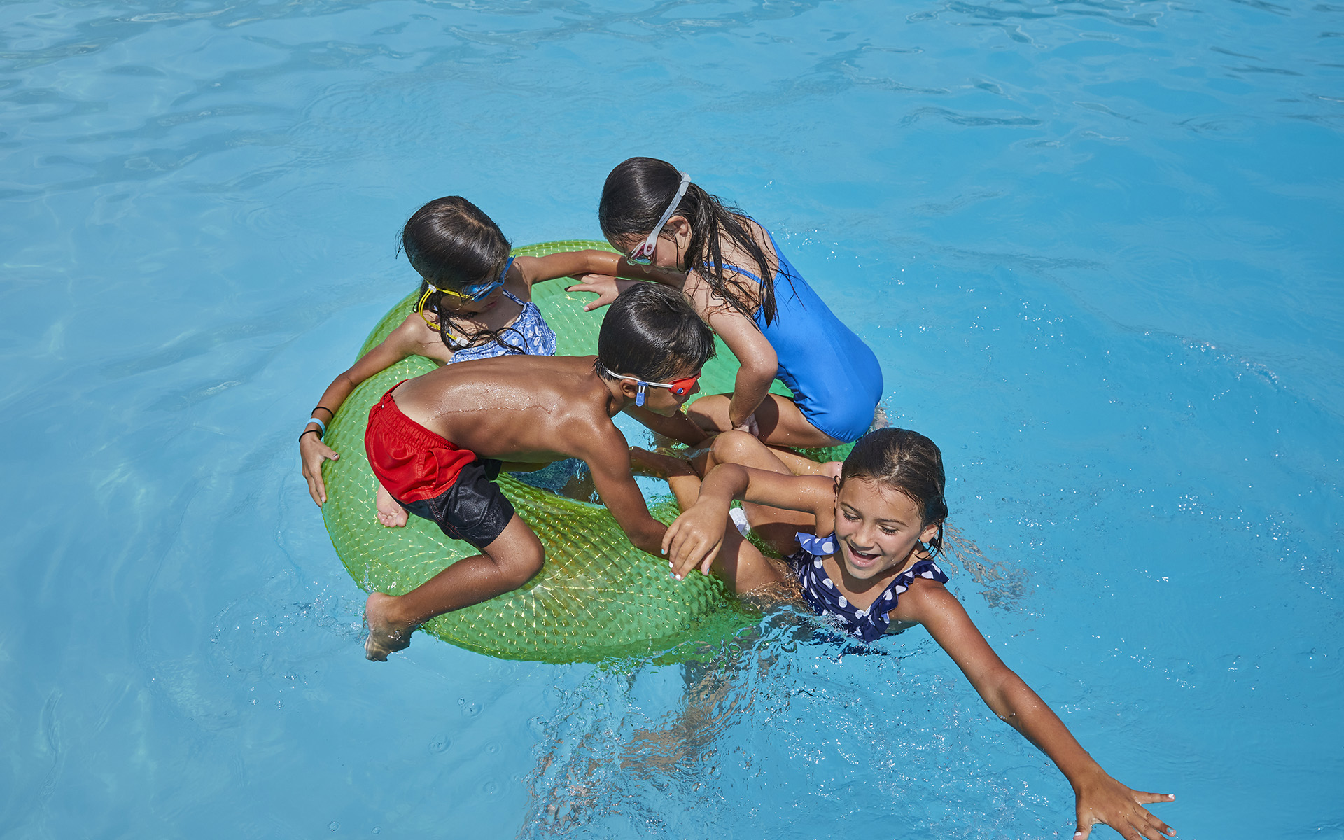 Three pools in the Sports Pavillion with dedicated Olympic swim lanes, a zero-depth entry family leisure pool and a shaded baby pool.