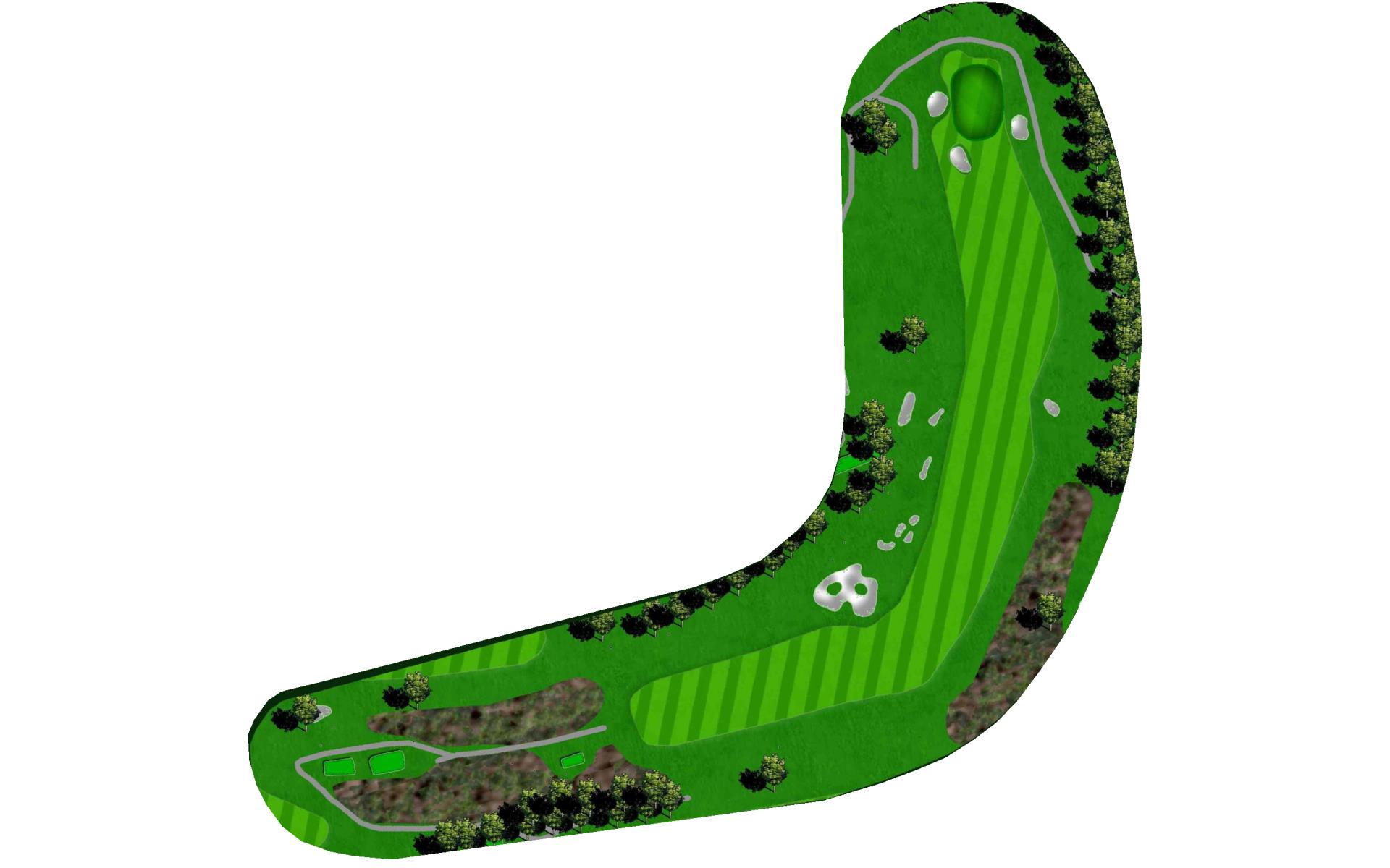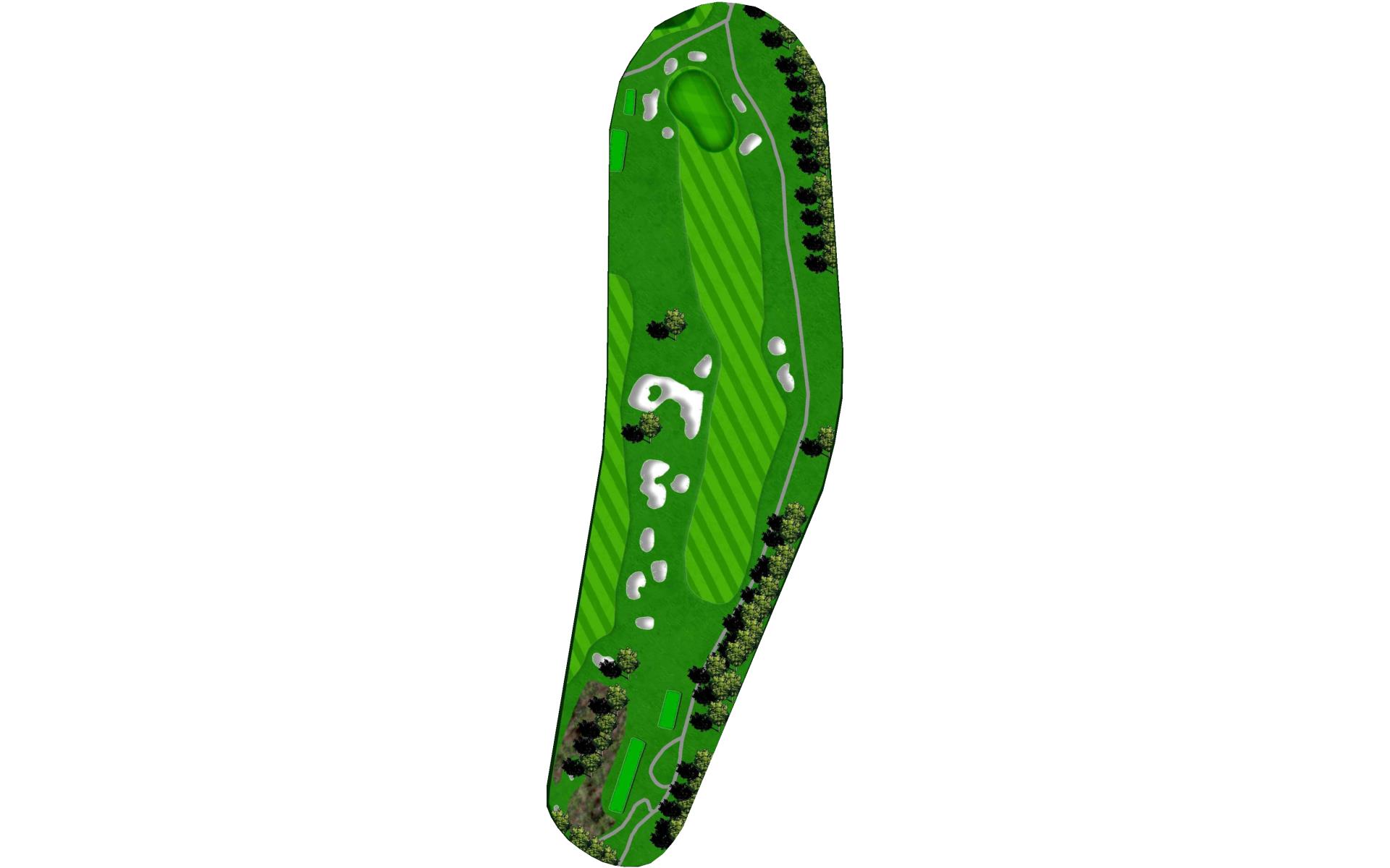 A challenging and long par 5. You must drive it straight down the fairway as you will then be challenged with an up-hill layup. The third shot is a tricky shot as you will also be challenged the pin position.
