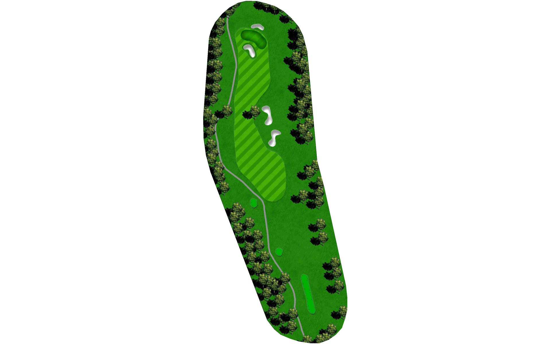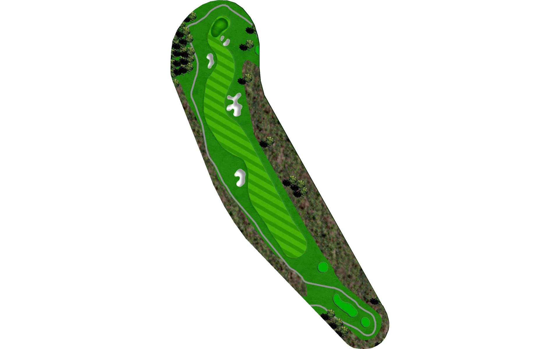 | The finishing hole at Blackjack is an uphill par 4. A solid play off the tee is to aim between the bunkers. Approach shots play into a green that heavily sloped from back-to-front and is guarded by two bunkers. |