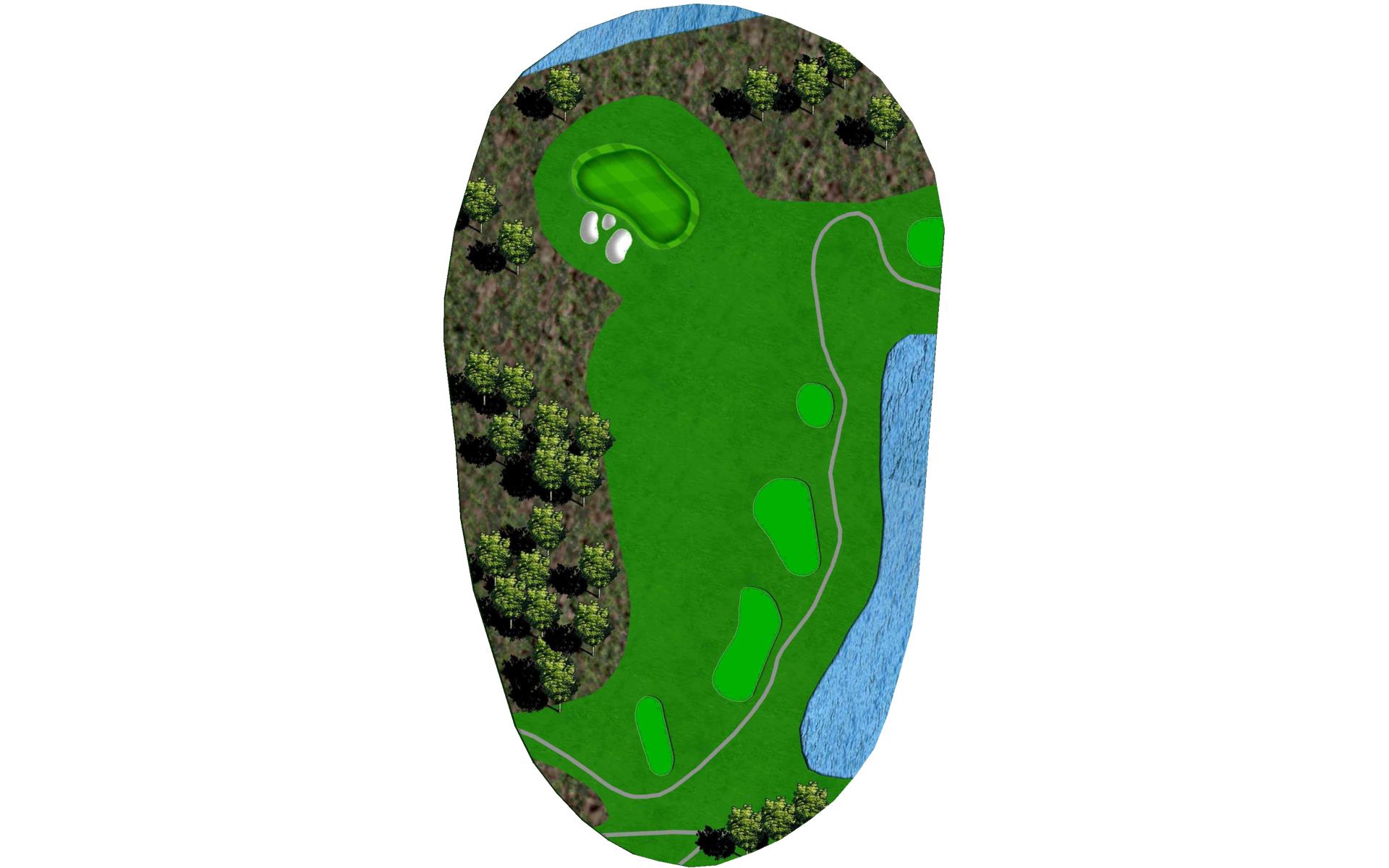 | A penalty area left and bunker right guard the green on the picturesque par 3. On the putting surface, a large slope in the middle will challenge even the best putters. |