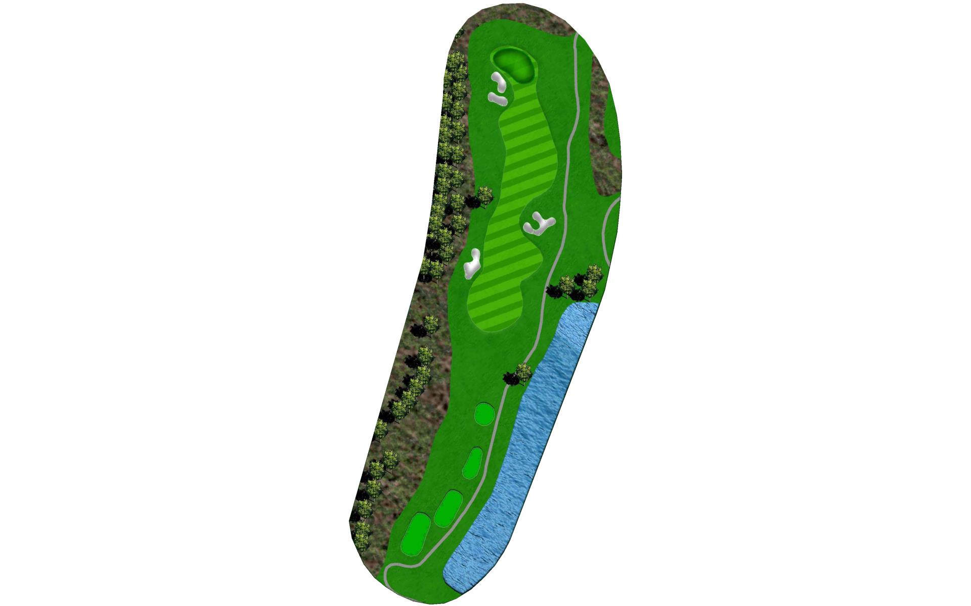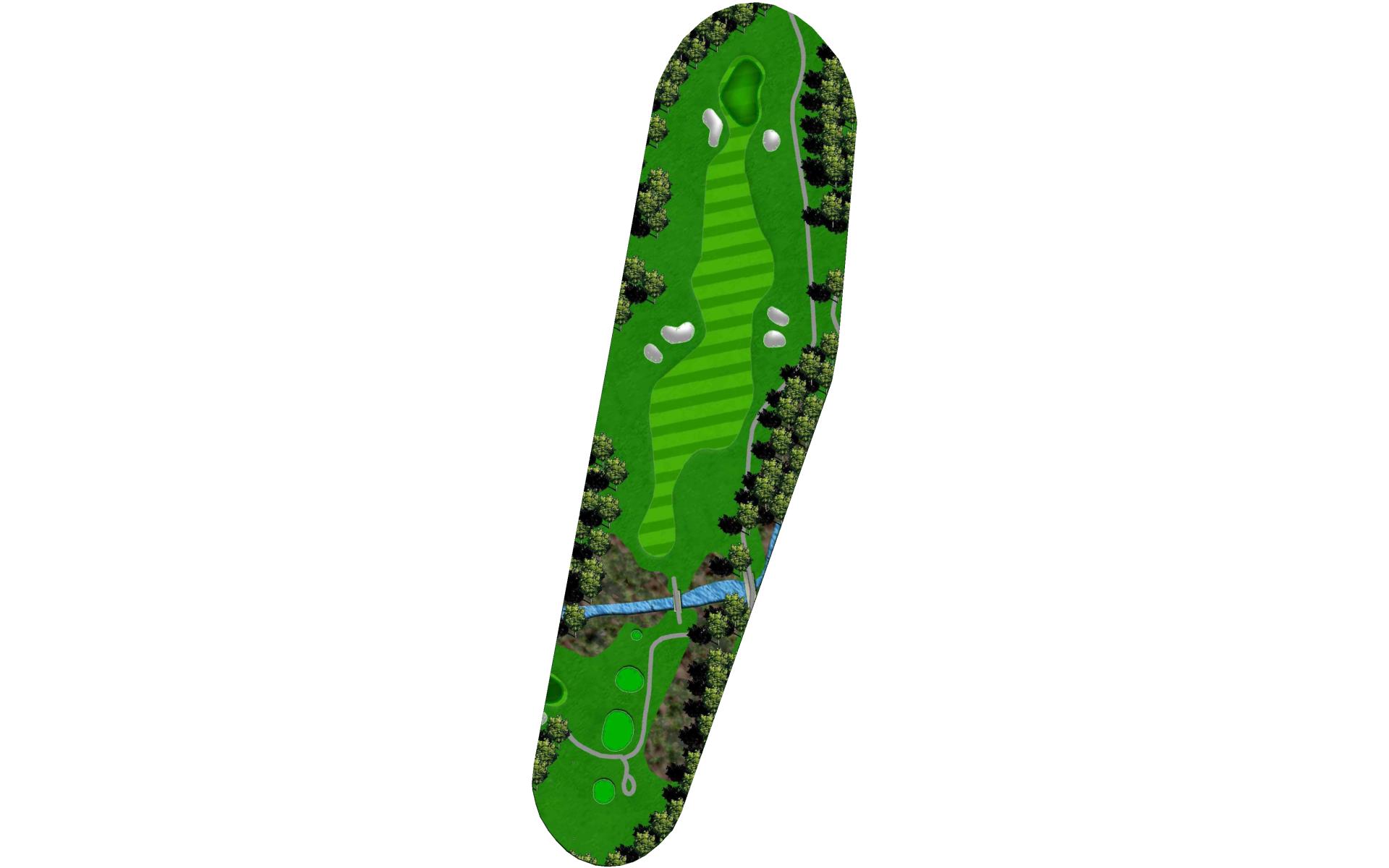 | An accurate tee shot down the left side, avoiding the two fairway bunkers, is required on this par 5. On the second shot, players can either lay-up short of the creek about 100 yards from the green or try to attack the elevated green with a fairway wood. A penalty area left and three greenside bunkers will easily punish anything offline. |