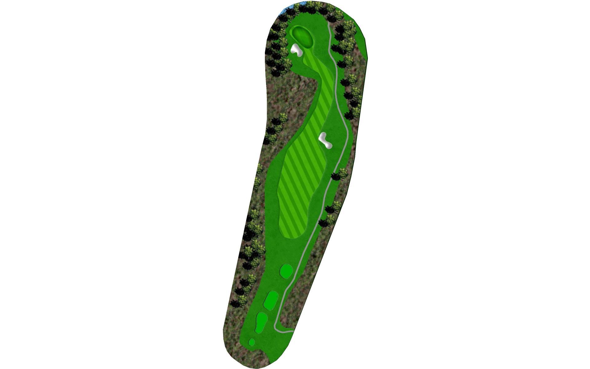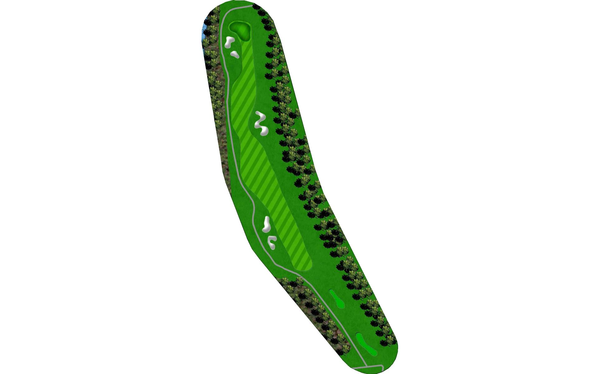 | The eleventh is a challenging, short and straight par 4. Player’s tee shots must navigate four fairway bunkers around an undulated landing area. This will leave a short iron into a shallow green that’s guarded by a bunker short, heavy rough long, and a penalty area to the left. |