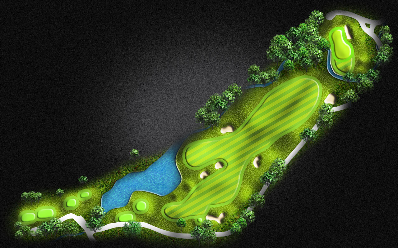 A demanding tee shot on the Par 5 is crucial. You must lay up between the water on the right and left. Long hitters will have a chance to get to the green in 2.