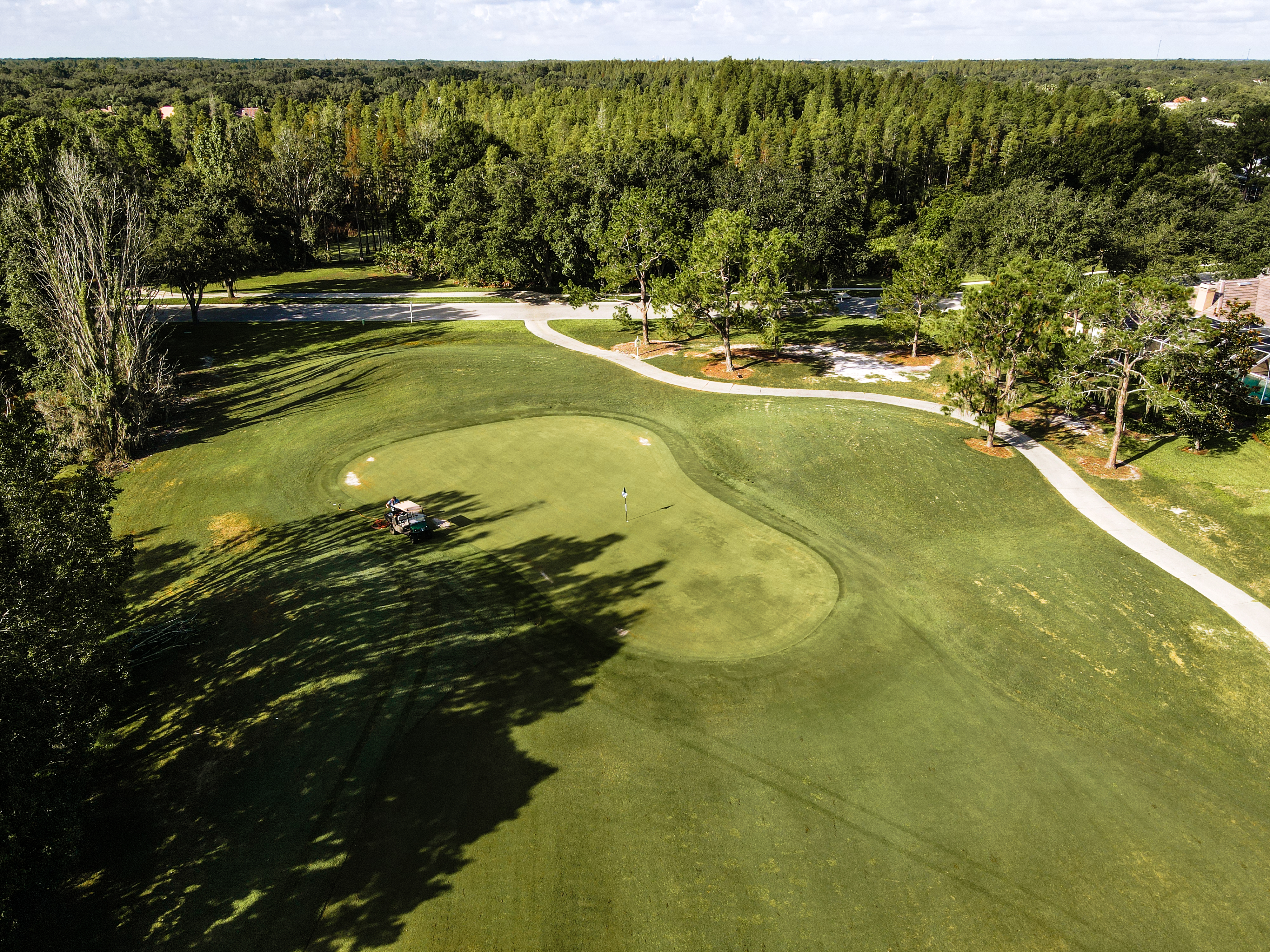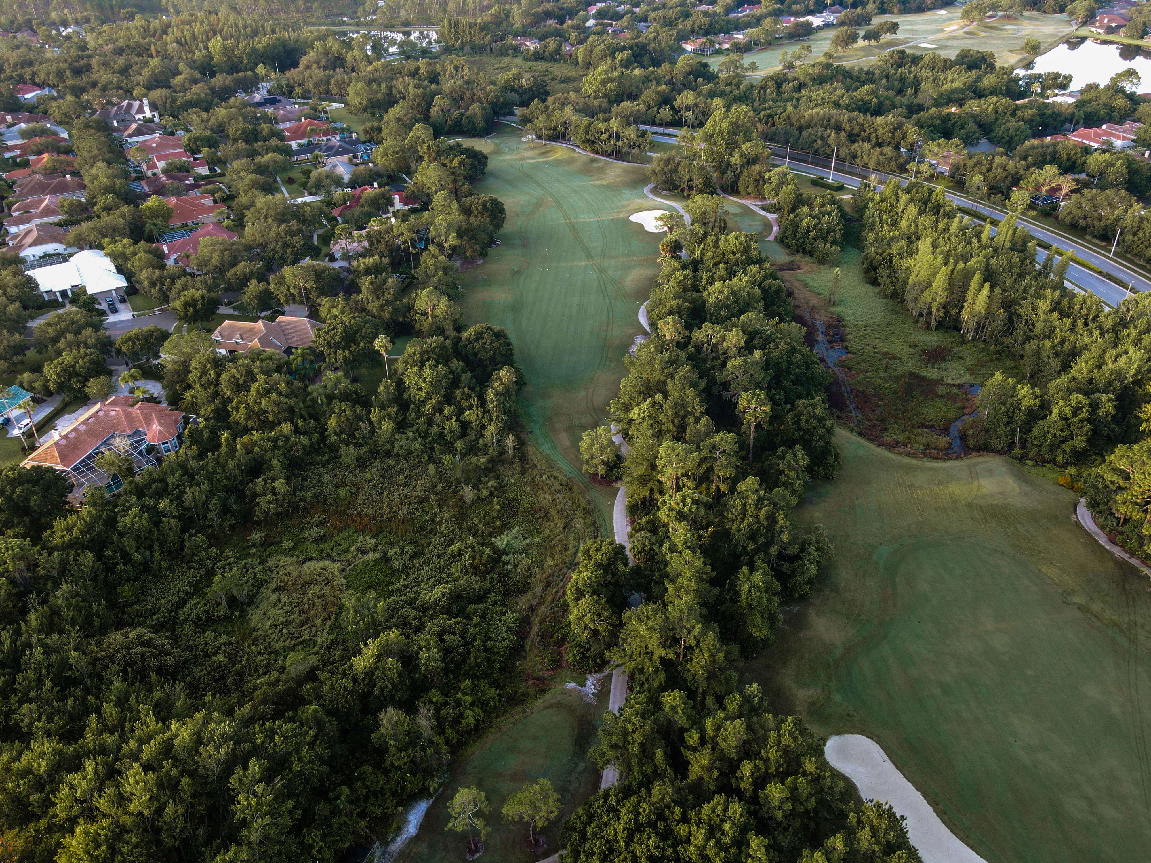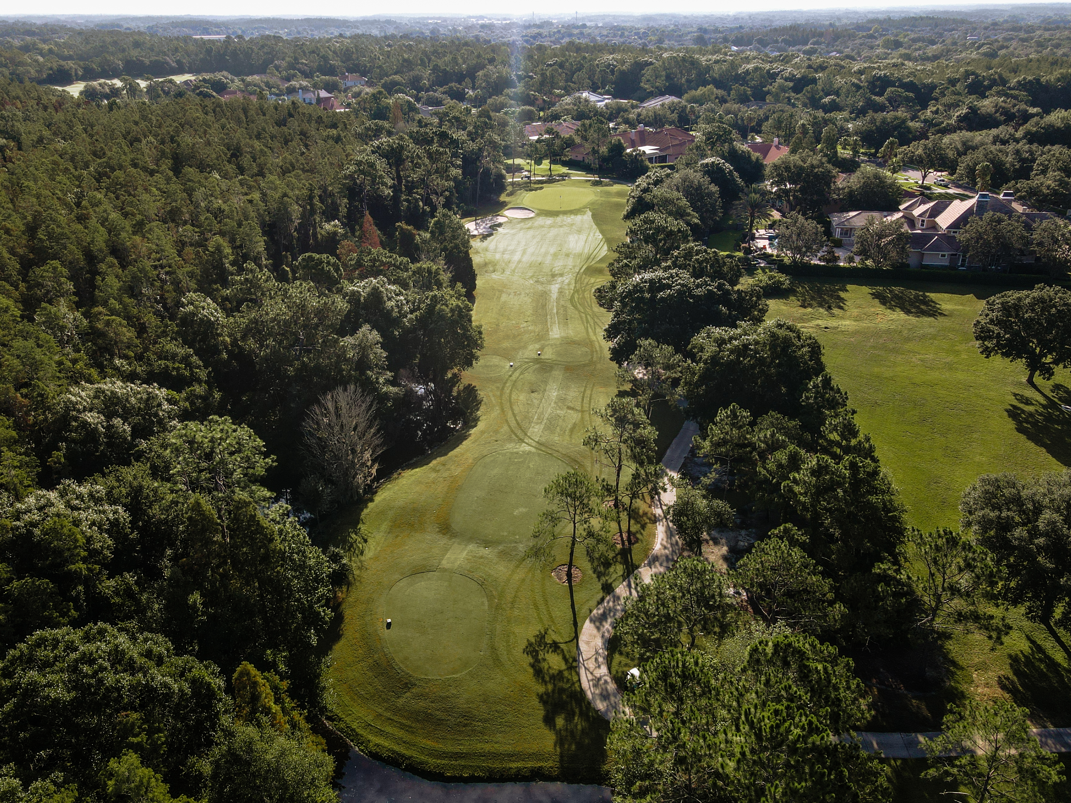 A perfect risk/reward par 5 that allows you a bail out to the left or take your chances navigating the water on the righthand side to set up a chance to hit this par 5 in two. The green is long and deceptively tiered.