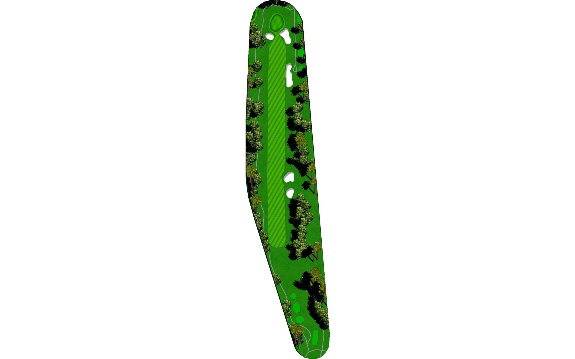 Tee shot out of a shoot off the back tee demands an accurate shot, but the green has little movement. If you get it on, you have a shot to drain it from anywhere.