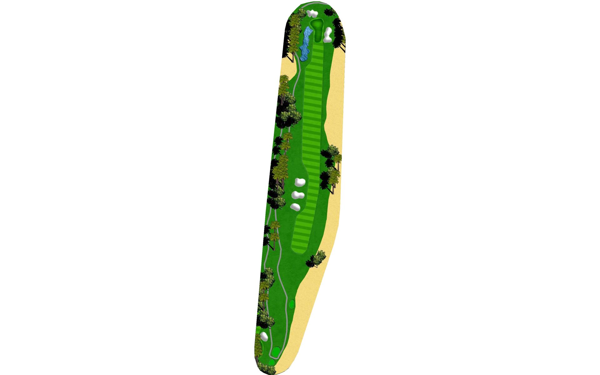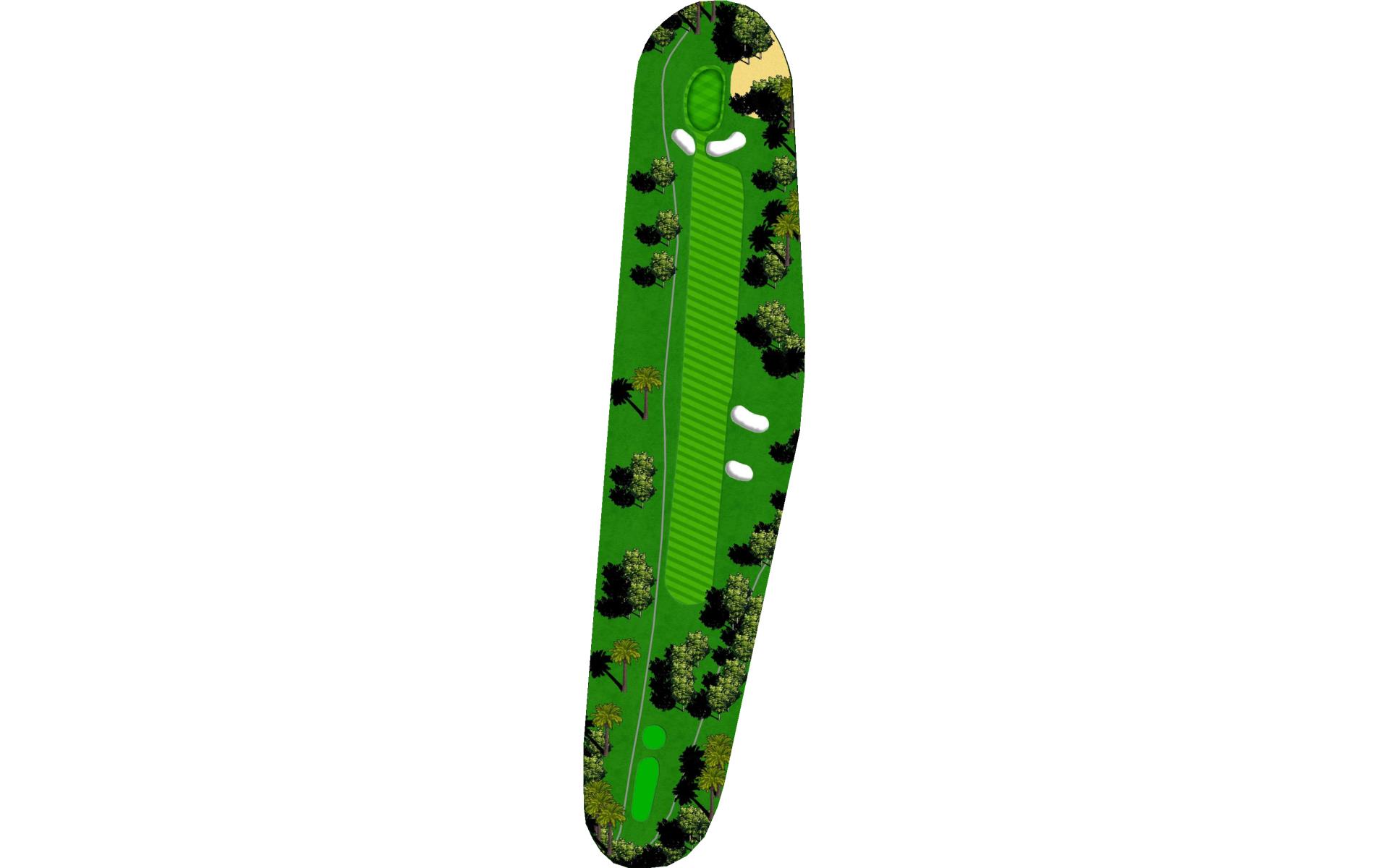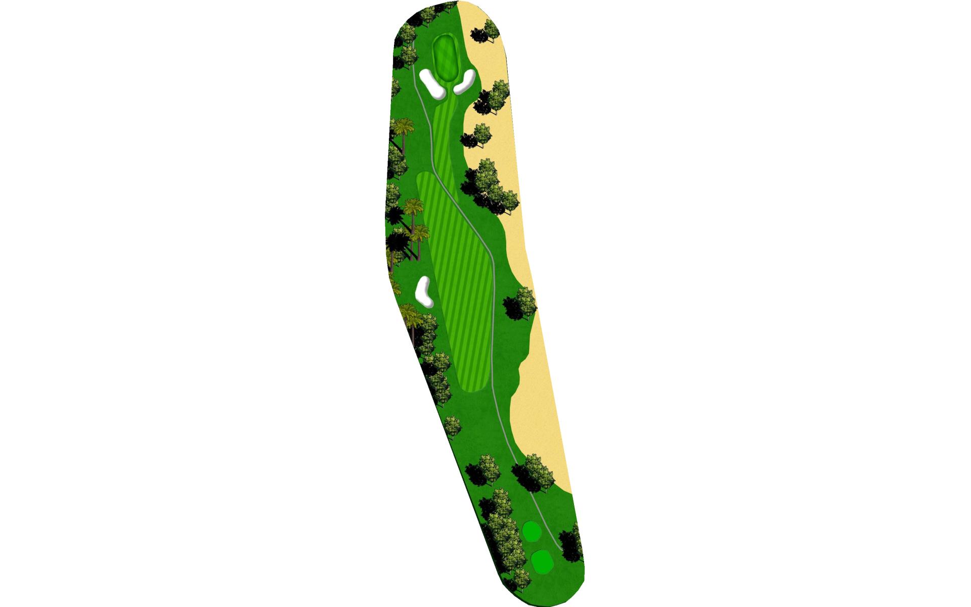 Short par 4 with a narrow fairway - trouble and wash on the left - bunkers right but scoreable from the fairway.