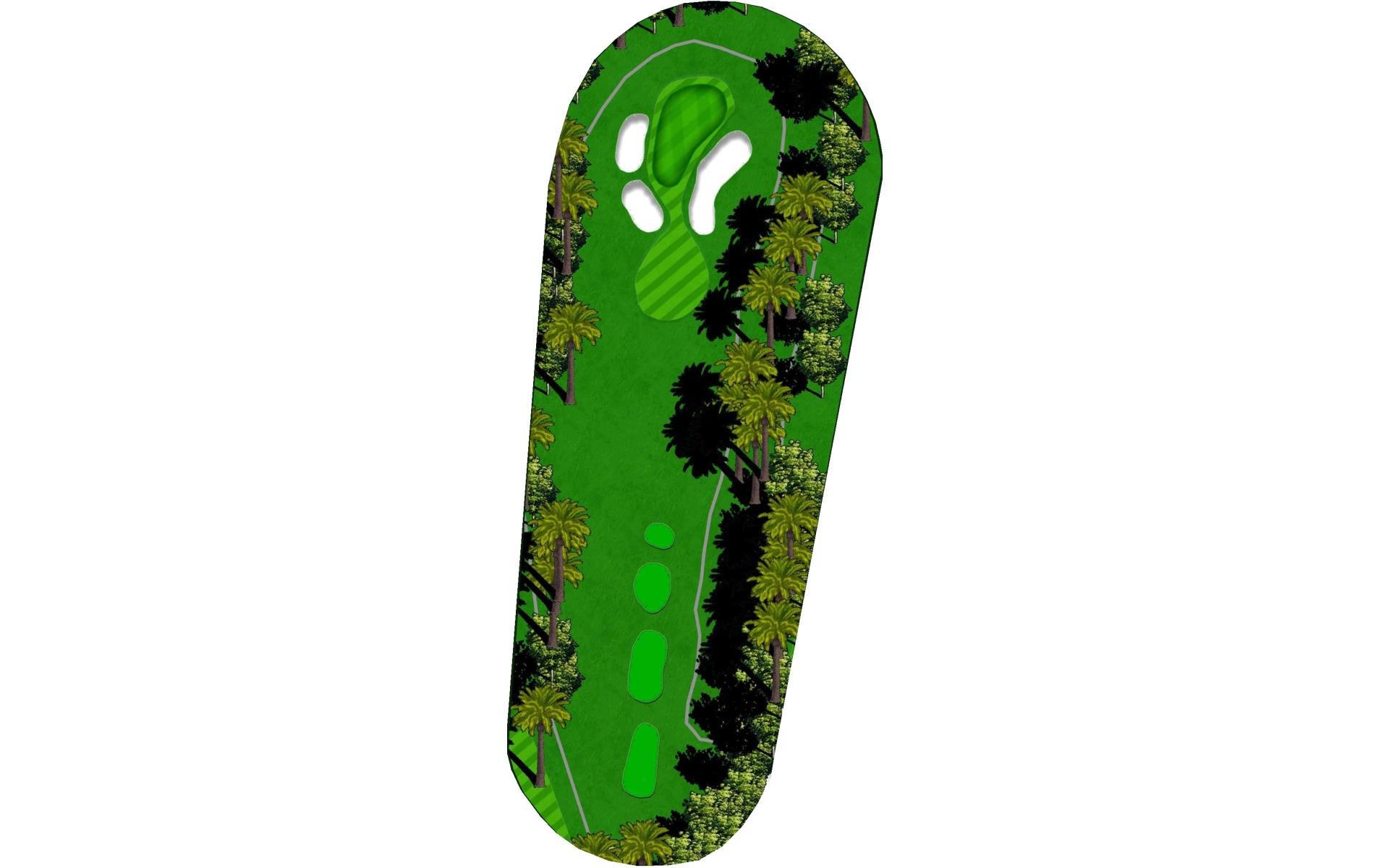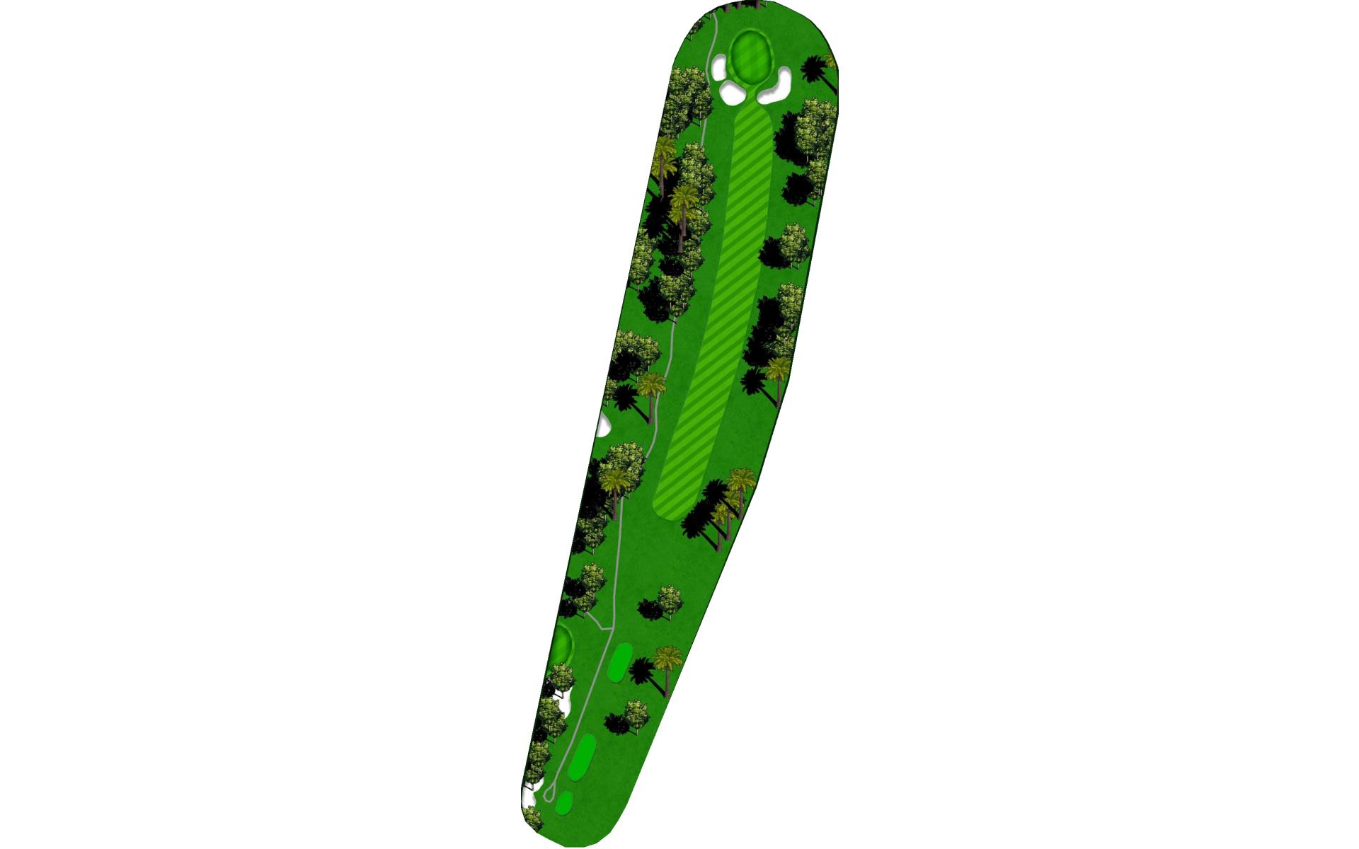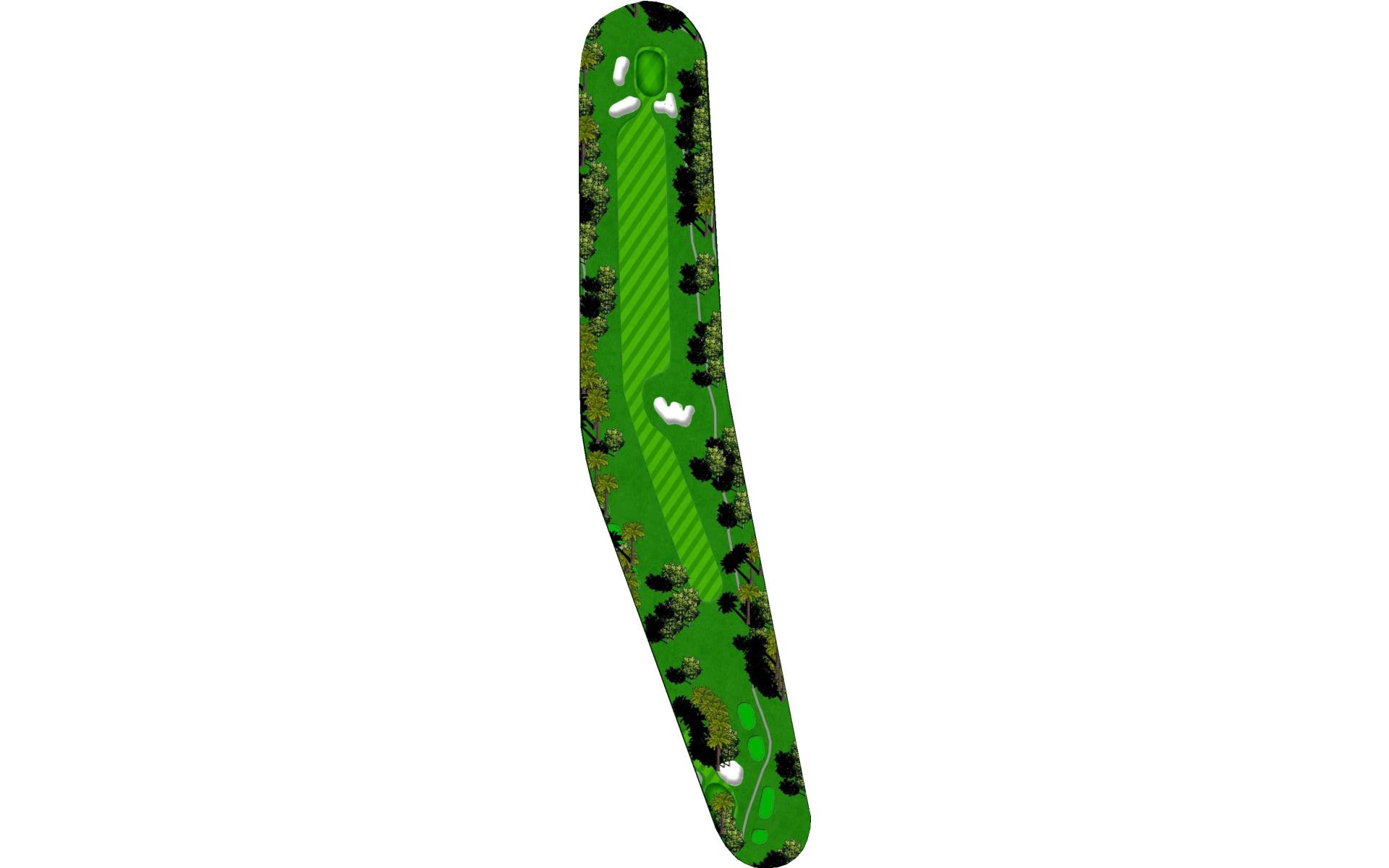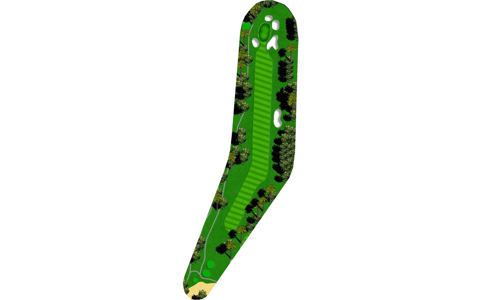 Short par 4 with a narrow fairway - trouble and wash on the left - bunkers right but scoreable from the fairway.