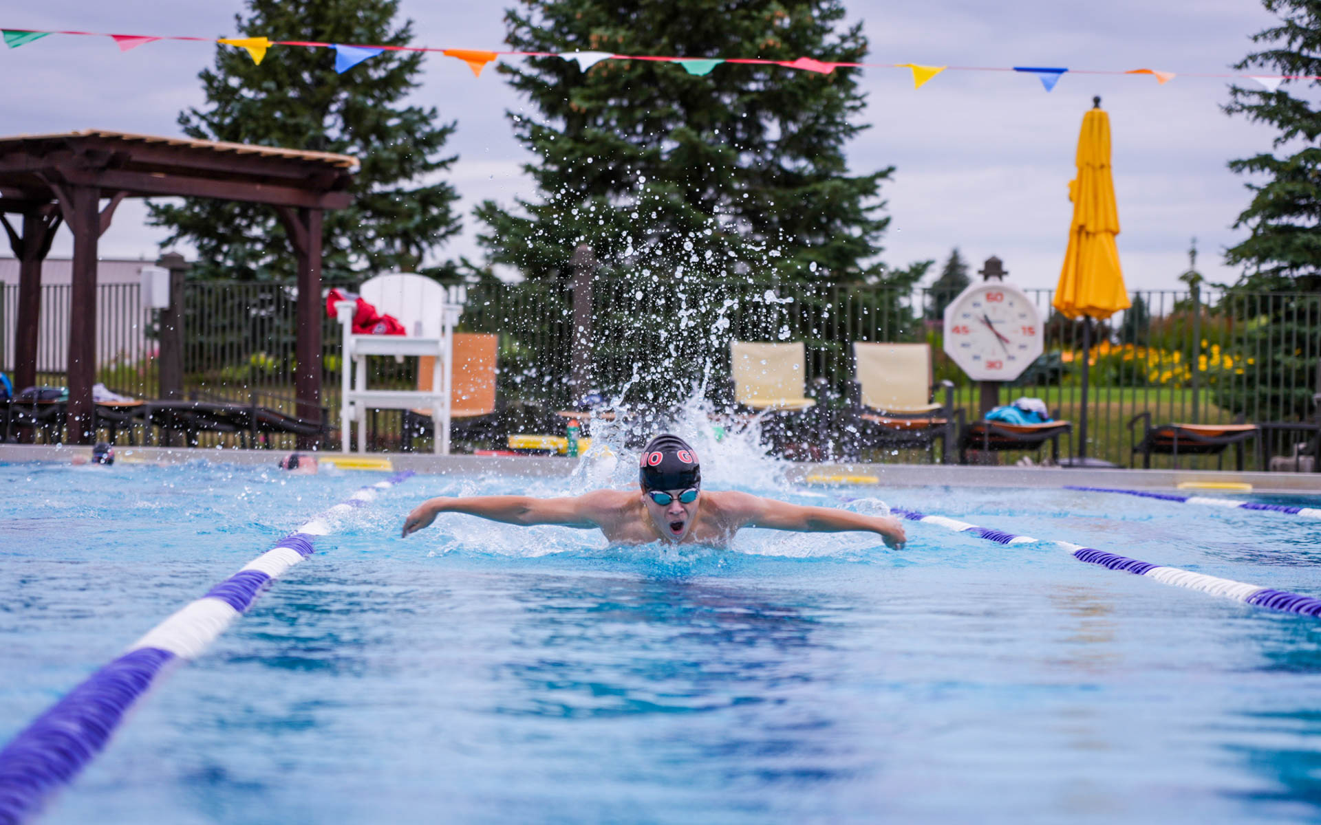 Our family pool offers ample opportunity no matter your intensity or skill level in the water. Want to swim laps? We have designated lanes for that. Want a casual swim or fun in the pool with family? Enjoy our diving board, slide, water spouts and zero-depth entry. Towel services and locker rooms are available, and Members who get the nibbles while lounging poolside can order from either our poolside cabana or our main dining menu for takeout services.