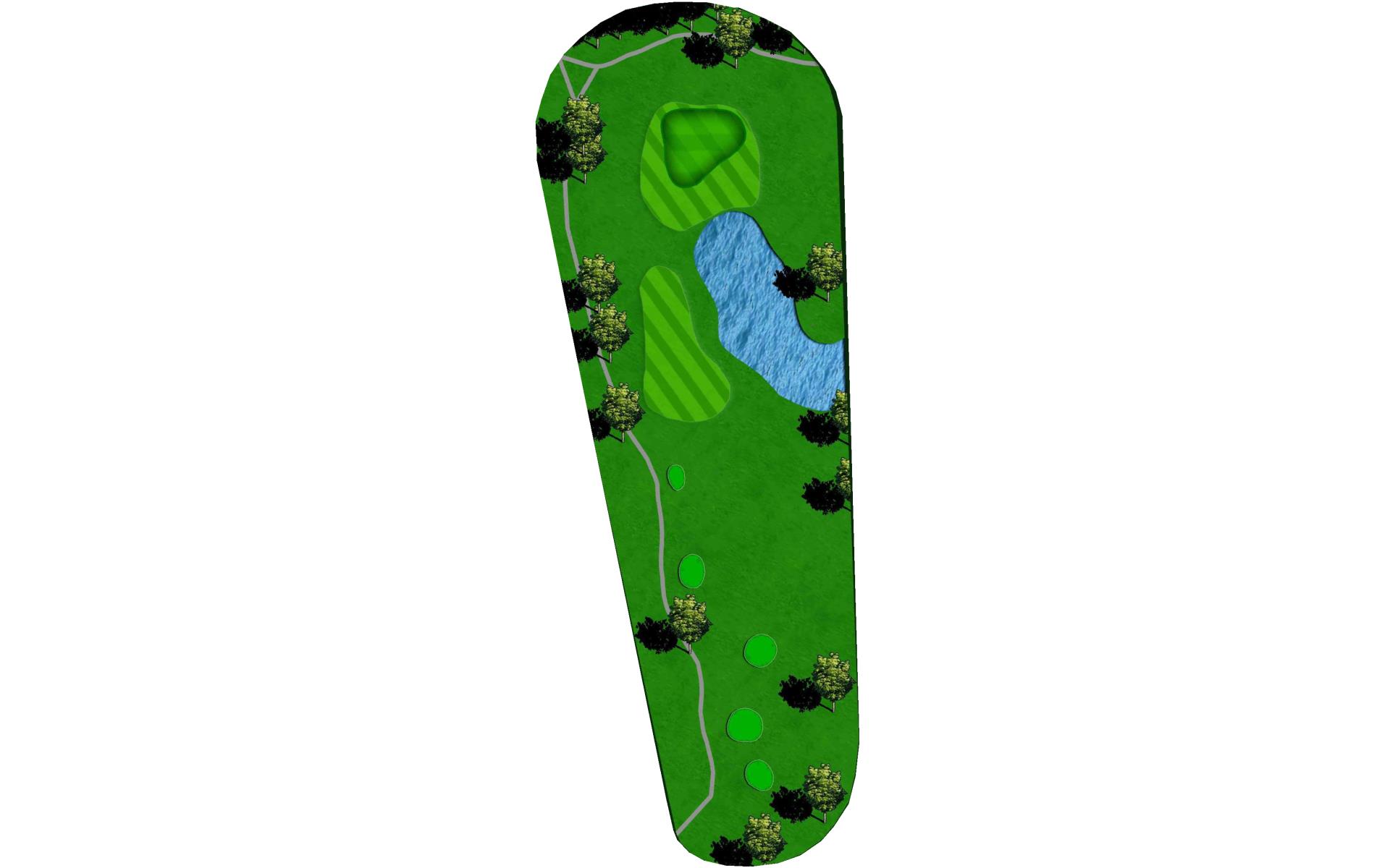 This long Par Three has a Hazard protecting the right side of the green and there is a Bail out area short left of the green. This tricky green has many different slopes in it so being below the hole is optimal.