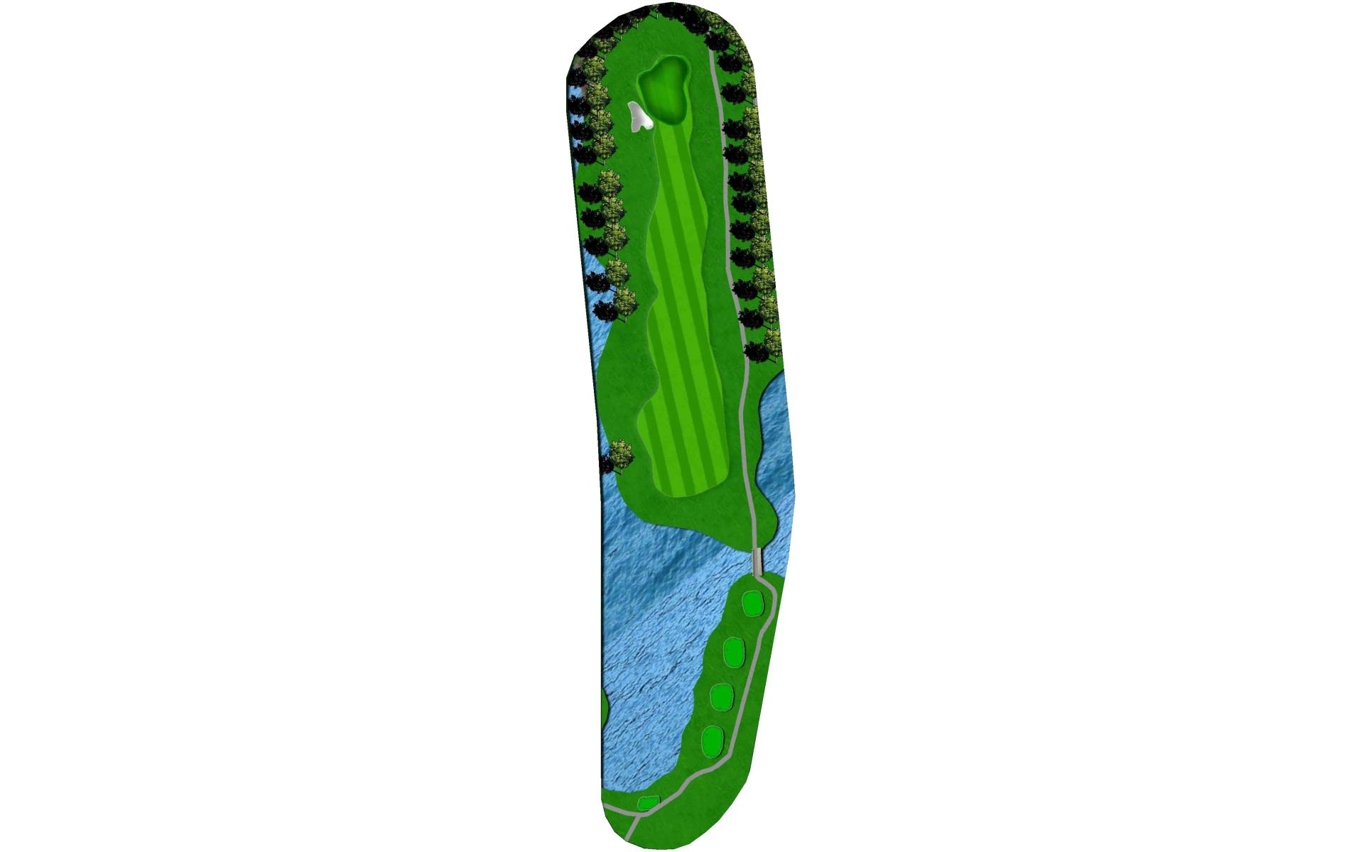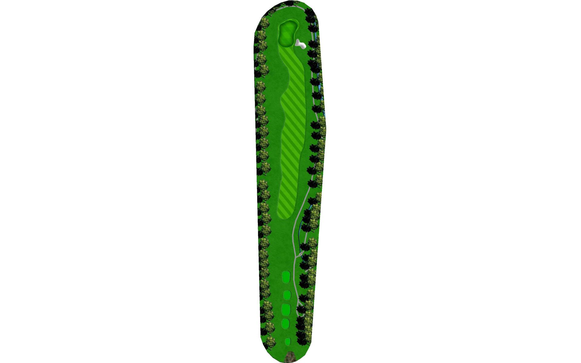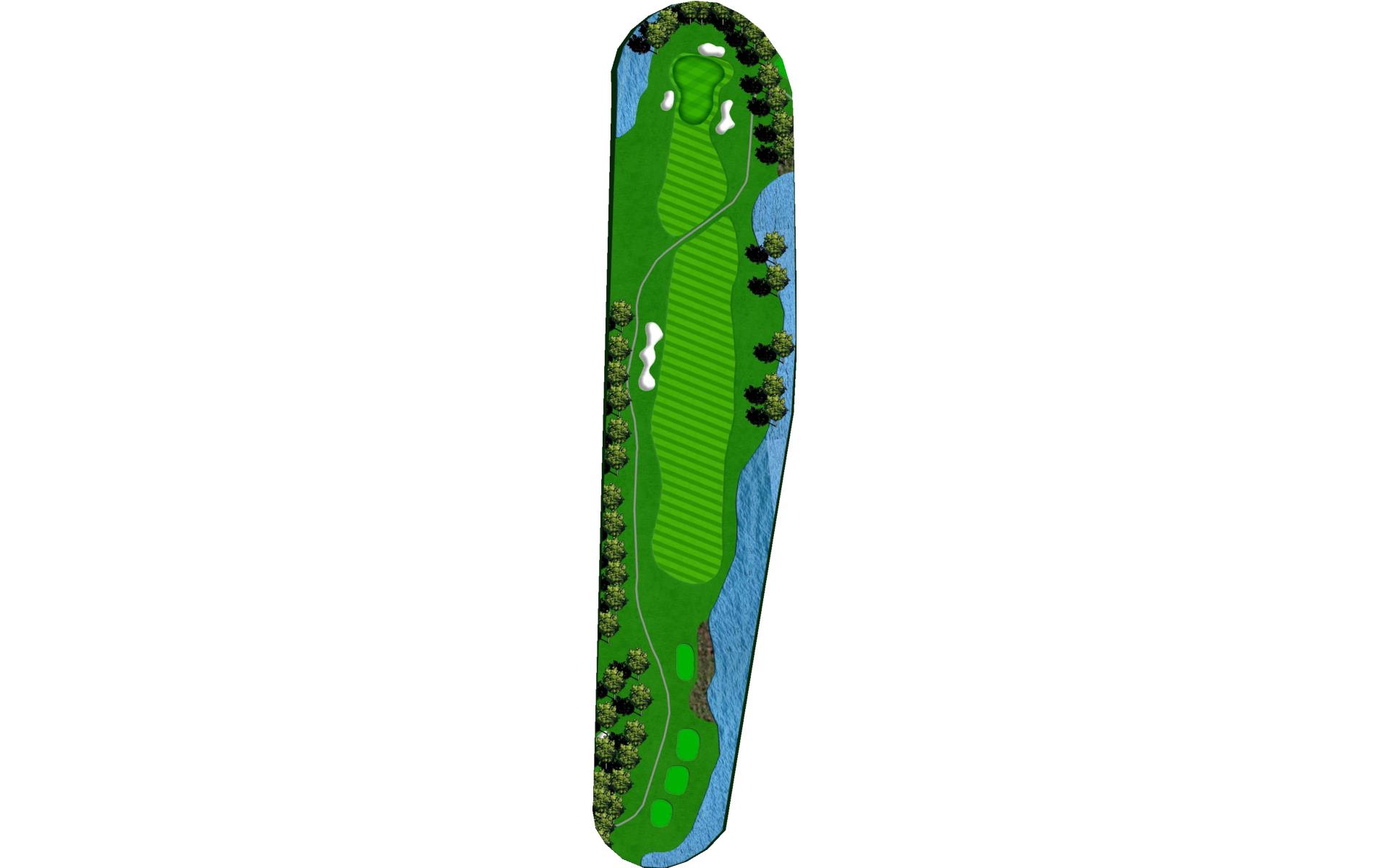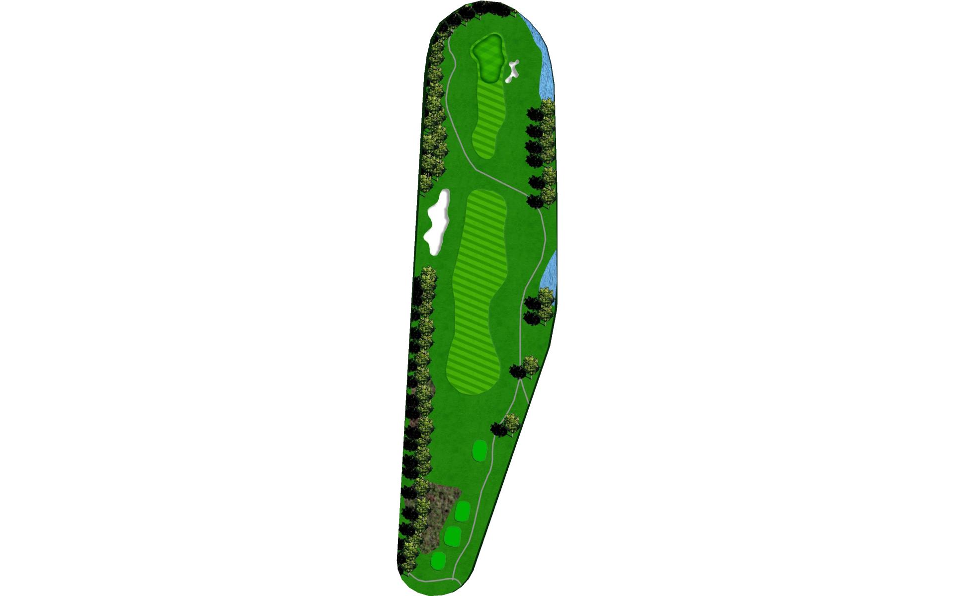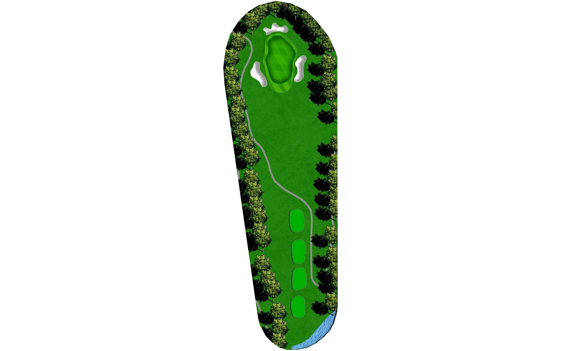 Tight Par 4 with creek along the right side of hole. Large green with middle slope.