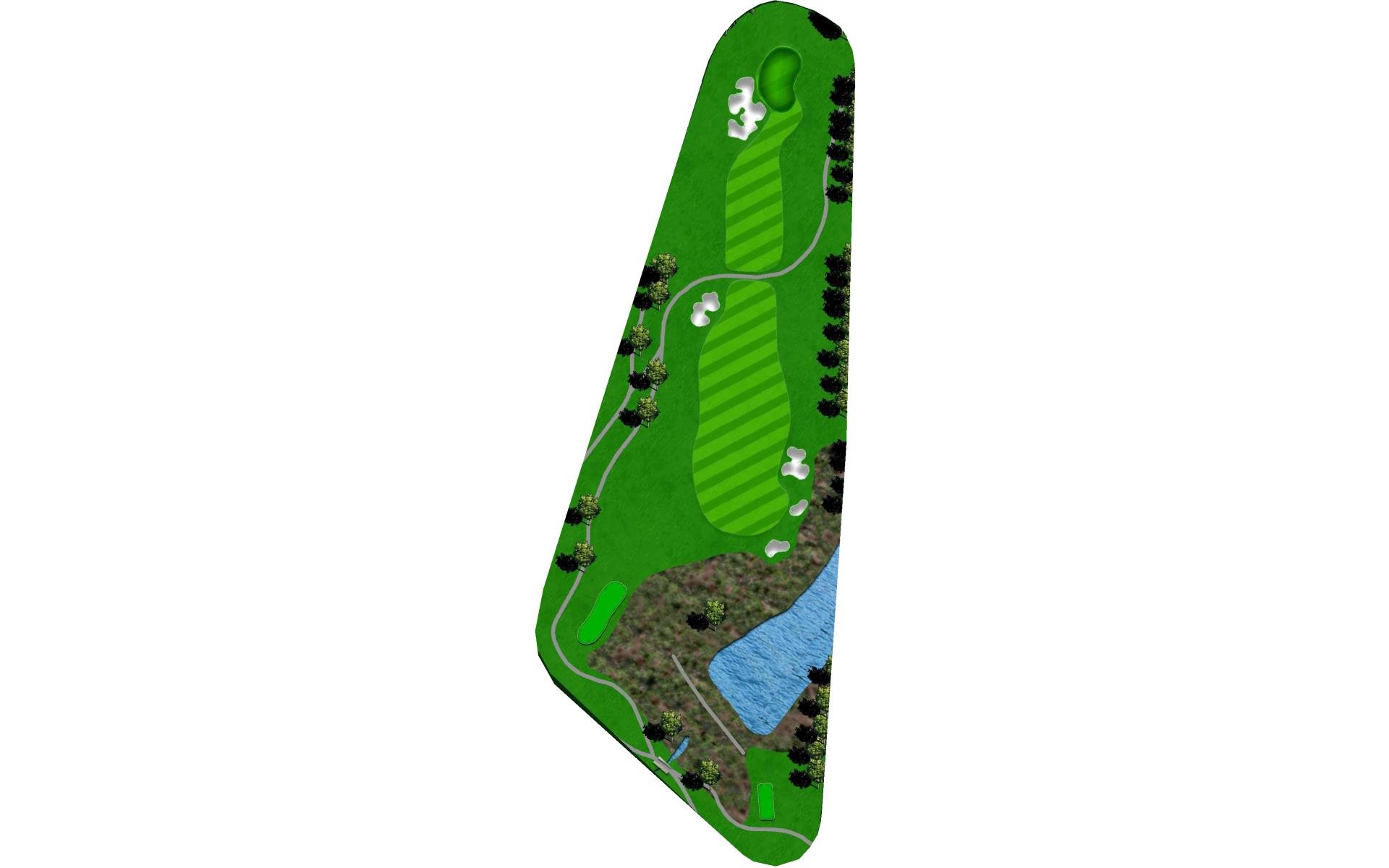 A tight risk/reward par 4. The brave of heart can try and drive the green or lay up with a long iron or hybrid, which will leave a full wedge into this green. Out of bounds lines the entire right side of the hole and a pond is present on the left and comes into play off the tee. The smart play is to leave yourself a full wedge into the green.