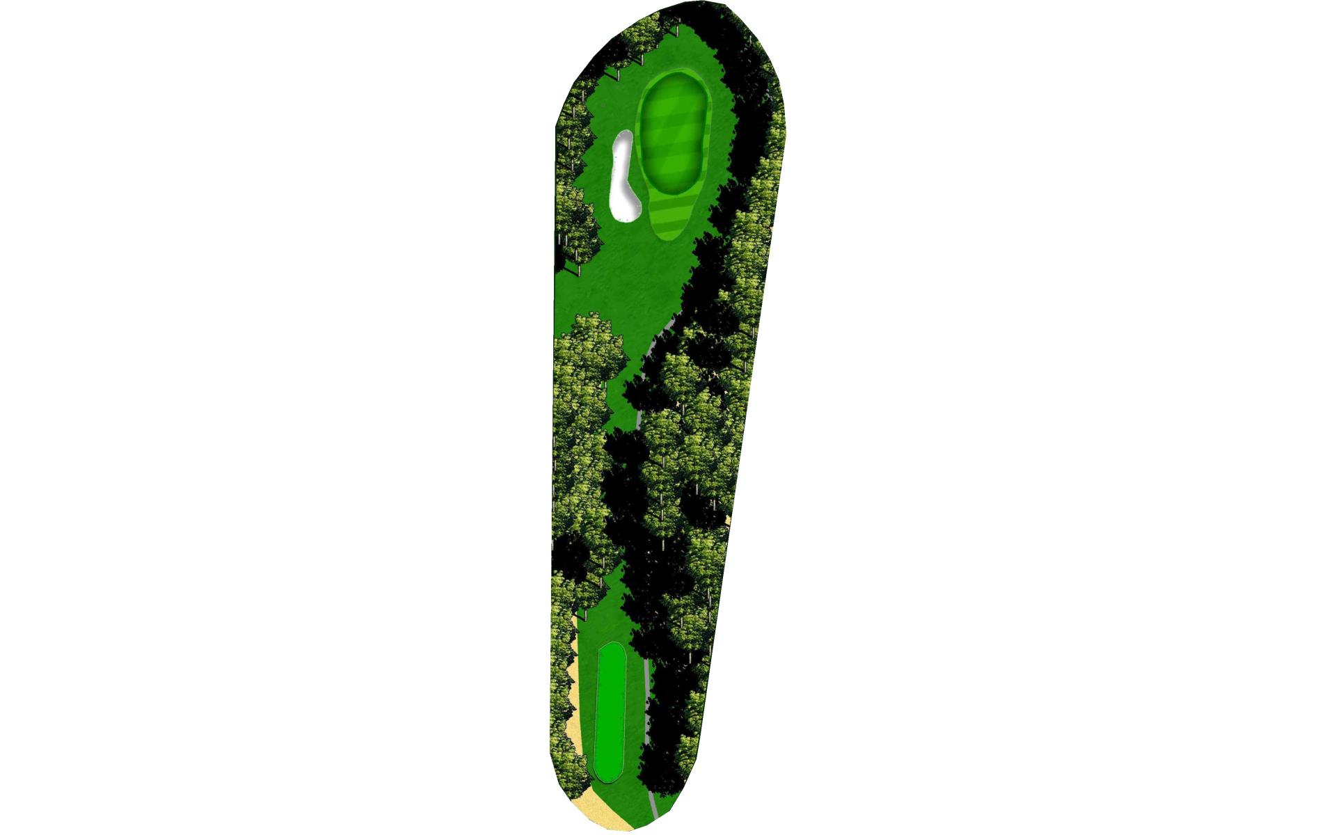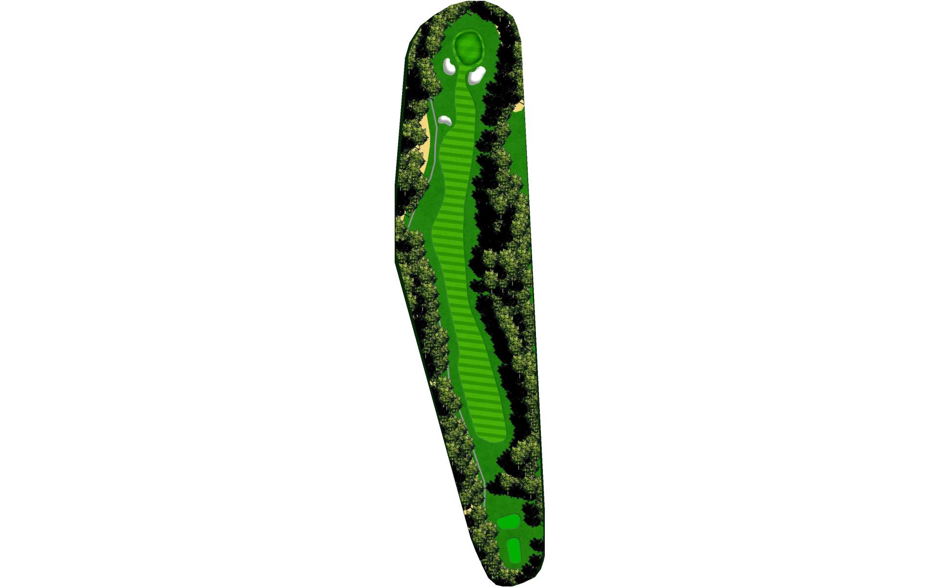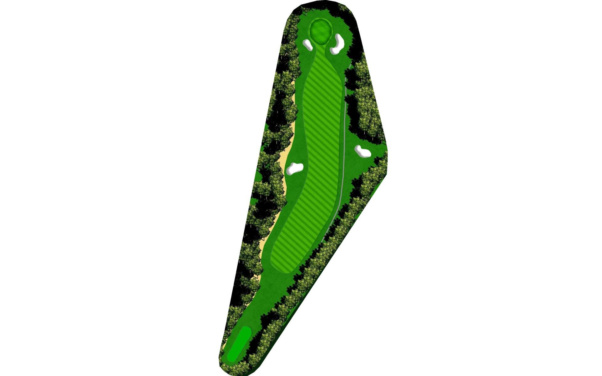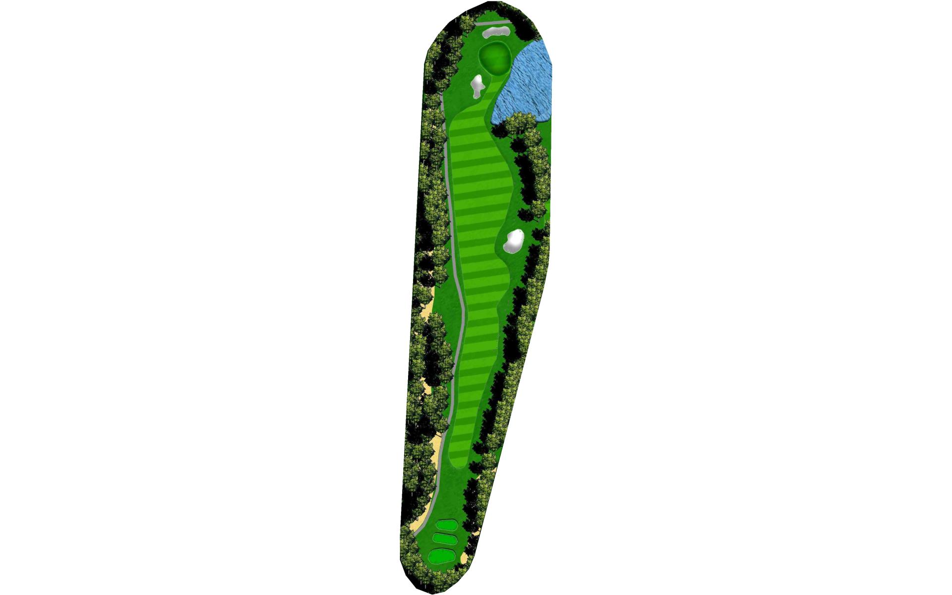 This dogleg left par 4 plays downhill. Off the tee, players will want to avoid missing too far right or they’ll find themselves in the trees. A right-to-left ball flight will set up an easy approach into the green.