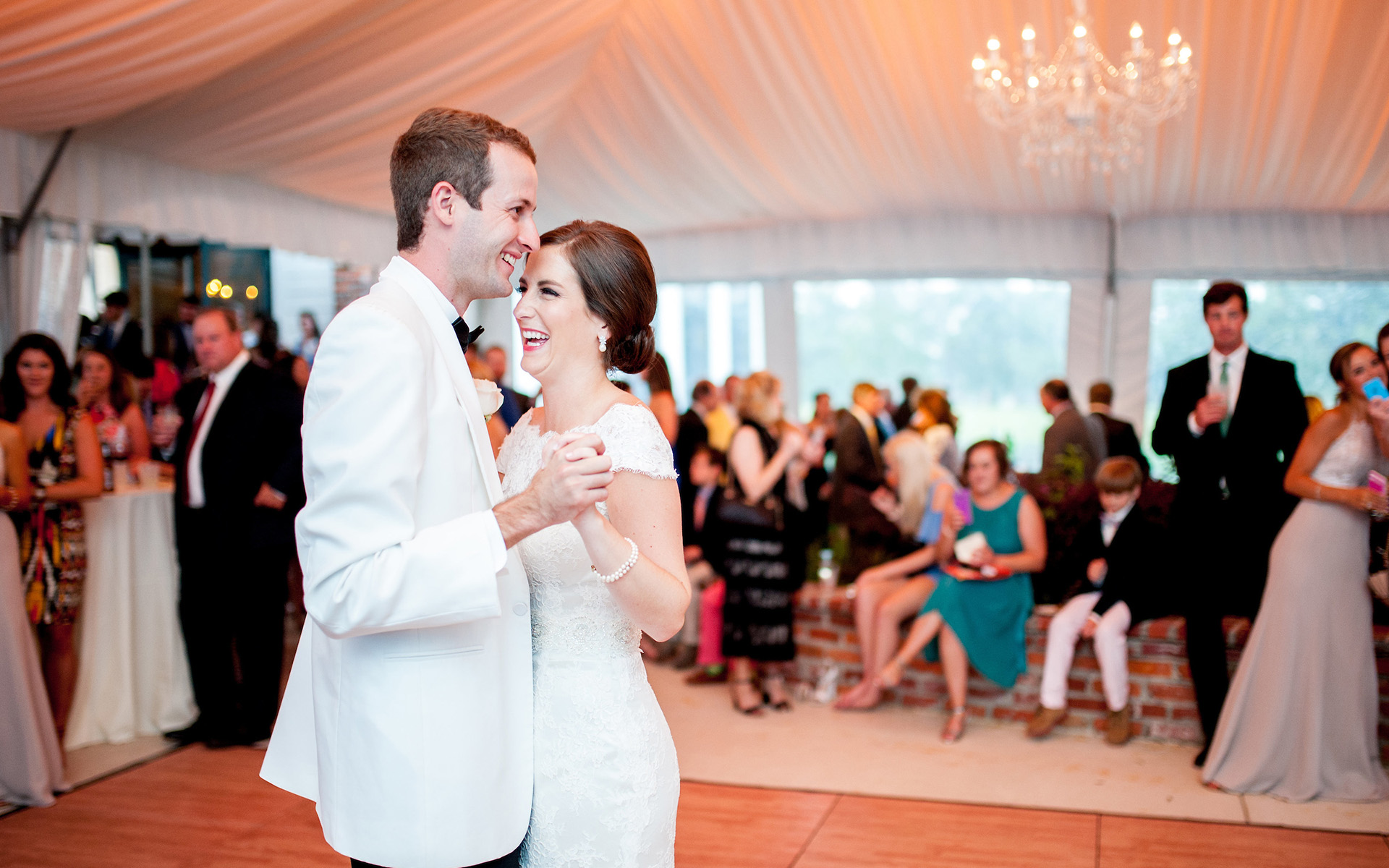 At the same time, guests can gather for the reception in the newly remodeled The Sunset at Porter Valley, a setting that’s both classic and elegant. Painted in pale cream and soft dove grey hues, it’s illuminated by contemporary dome chandeliers suspended from the coffered ceiling. Floor-to-ceiling windows frame views of the verdant fairways, and glass doors open directly onto the adjoining terrace. A beautiful grey planked wood floor is perfect for dancing the night away, while lovely wall sconces provide a romantic atmosphere. More intimate events are held in The Garden at Porter Valley, which features two walls of windows overlooking the golf course and pool.