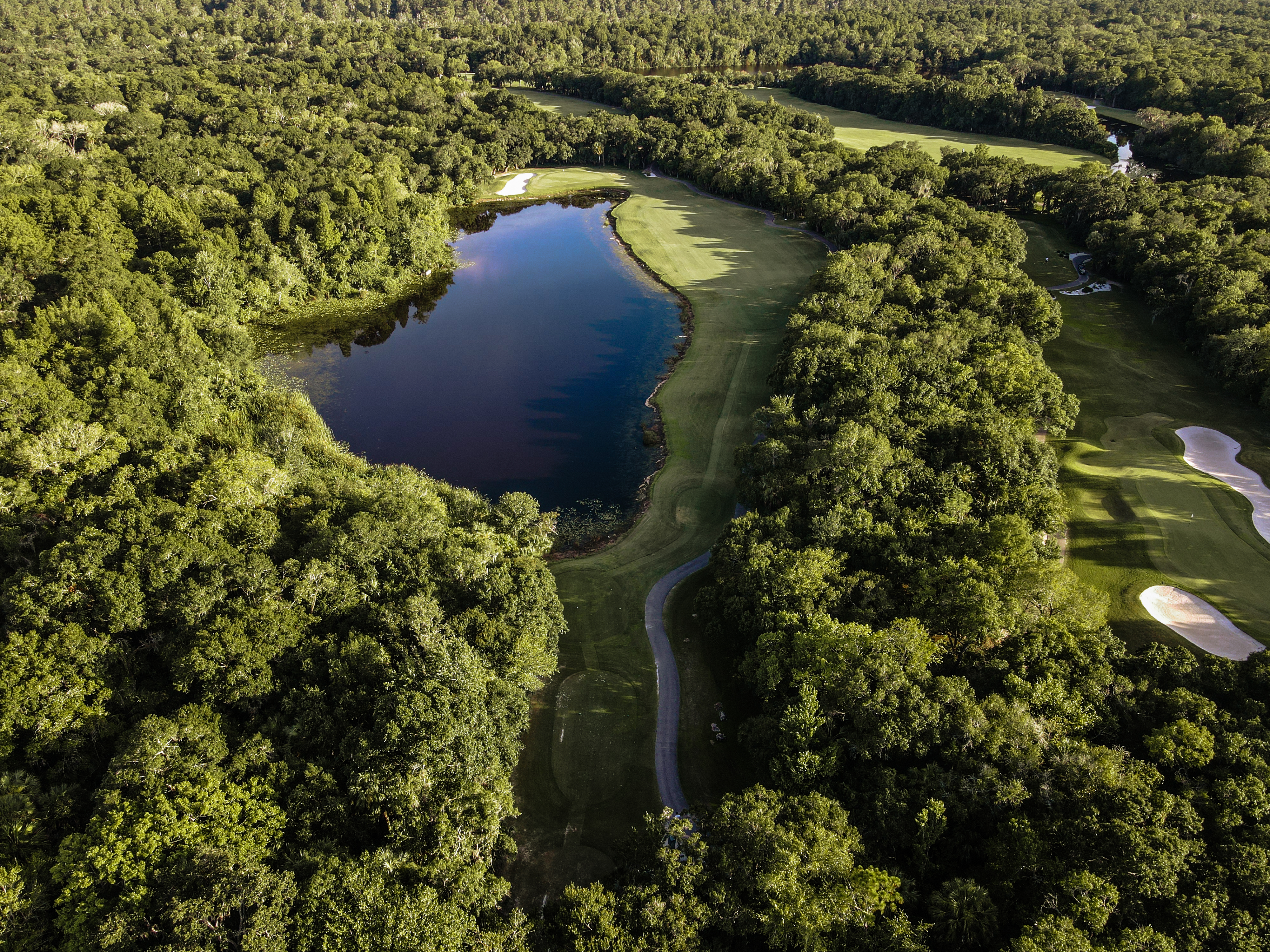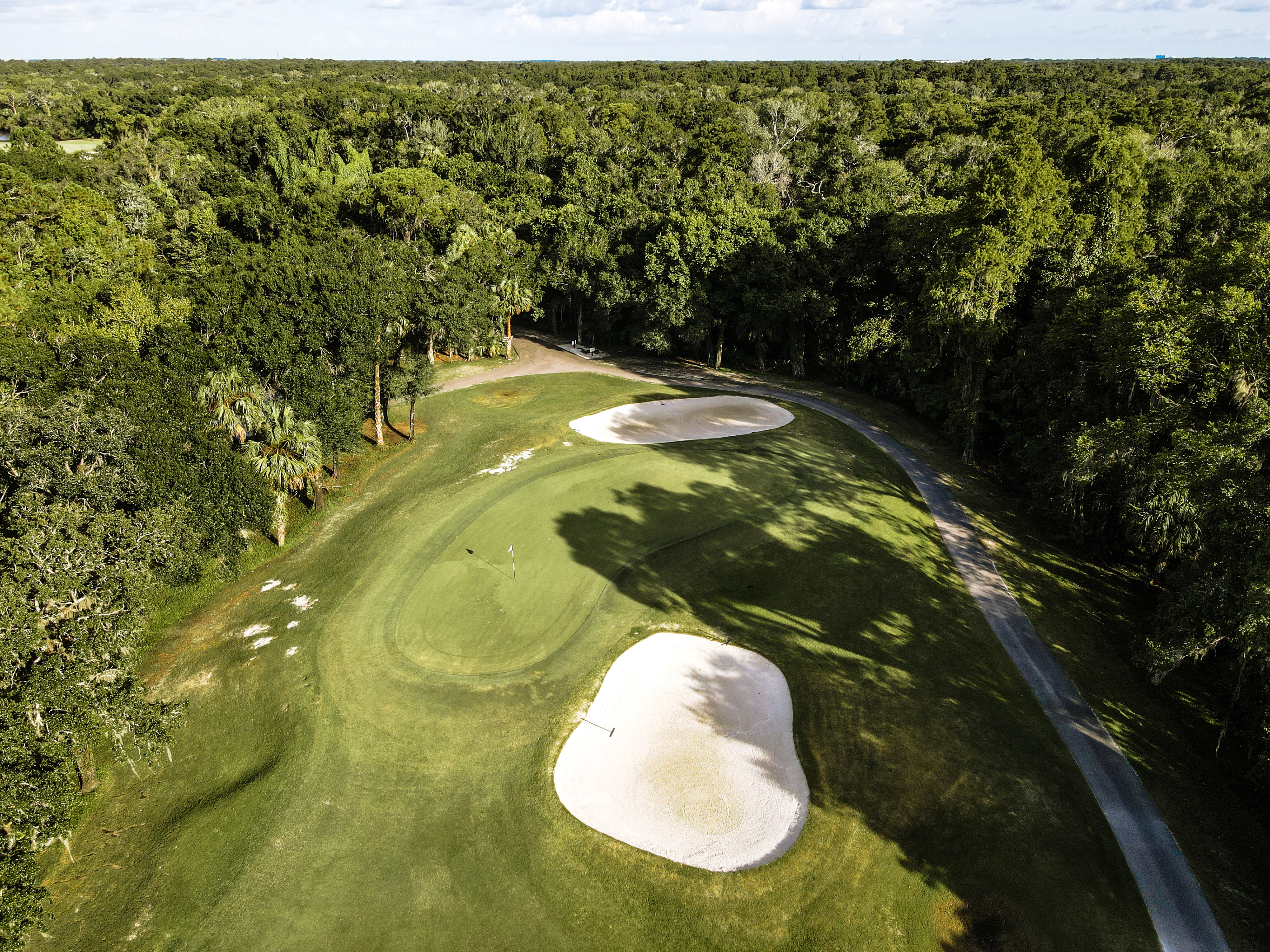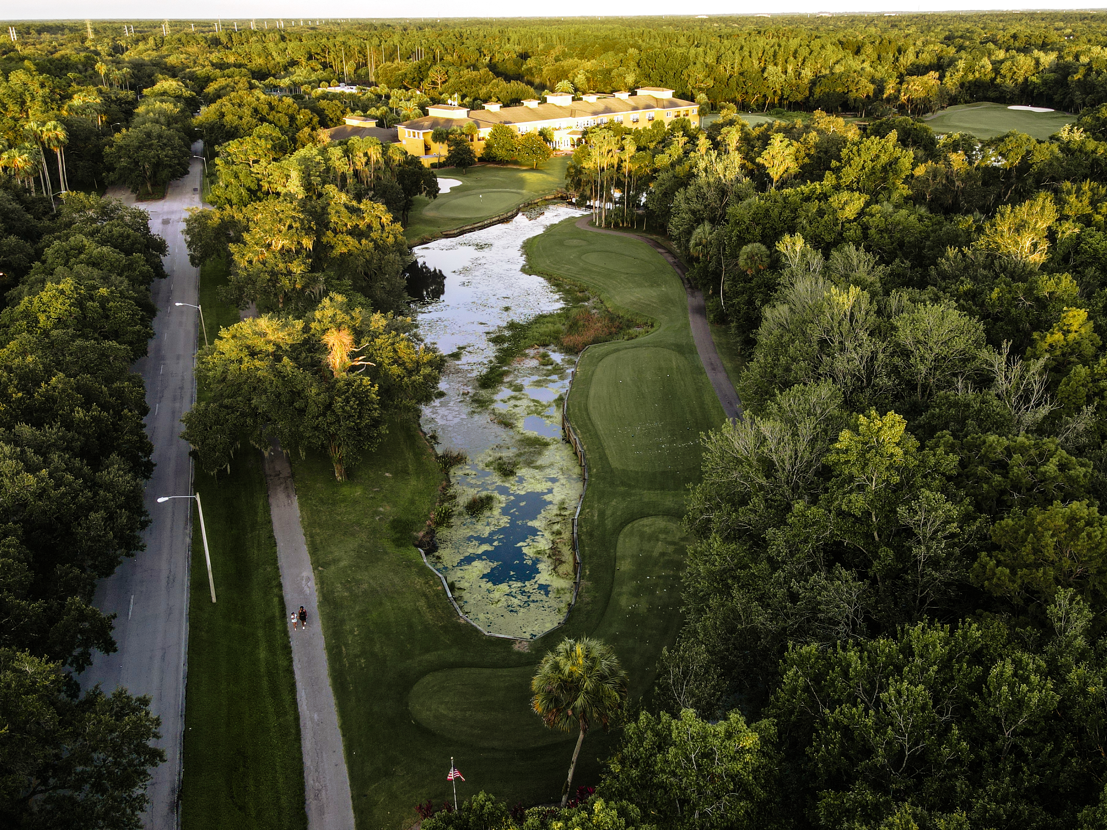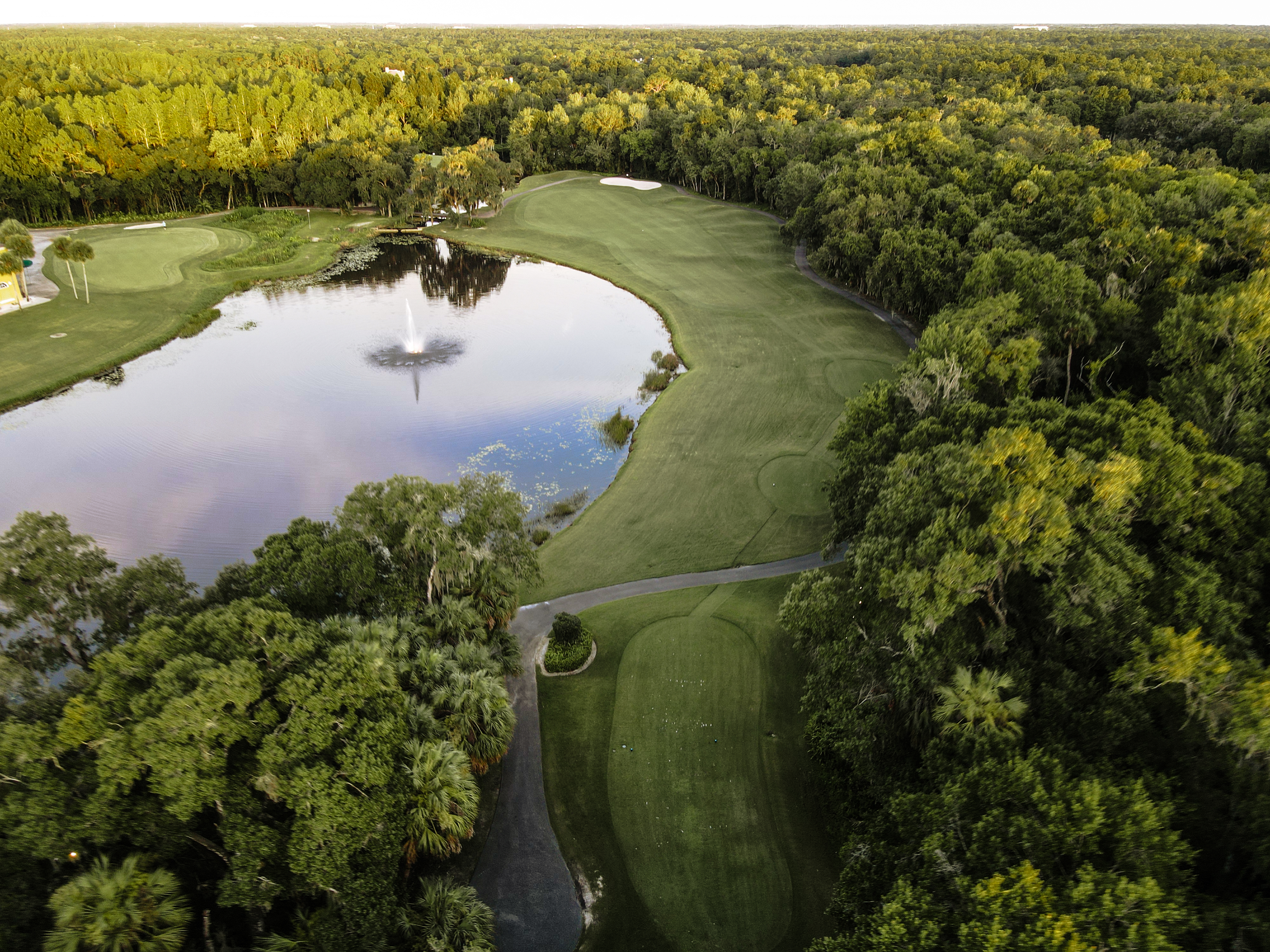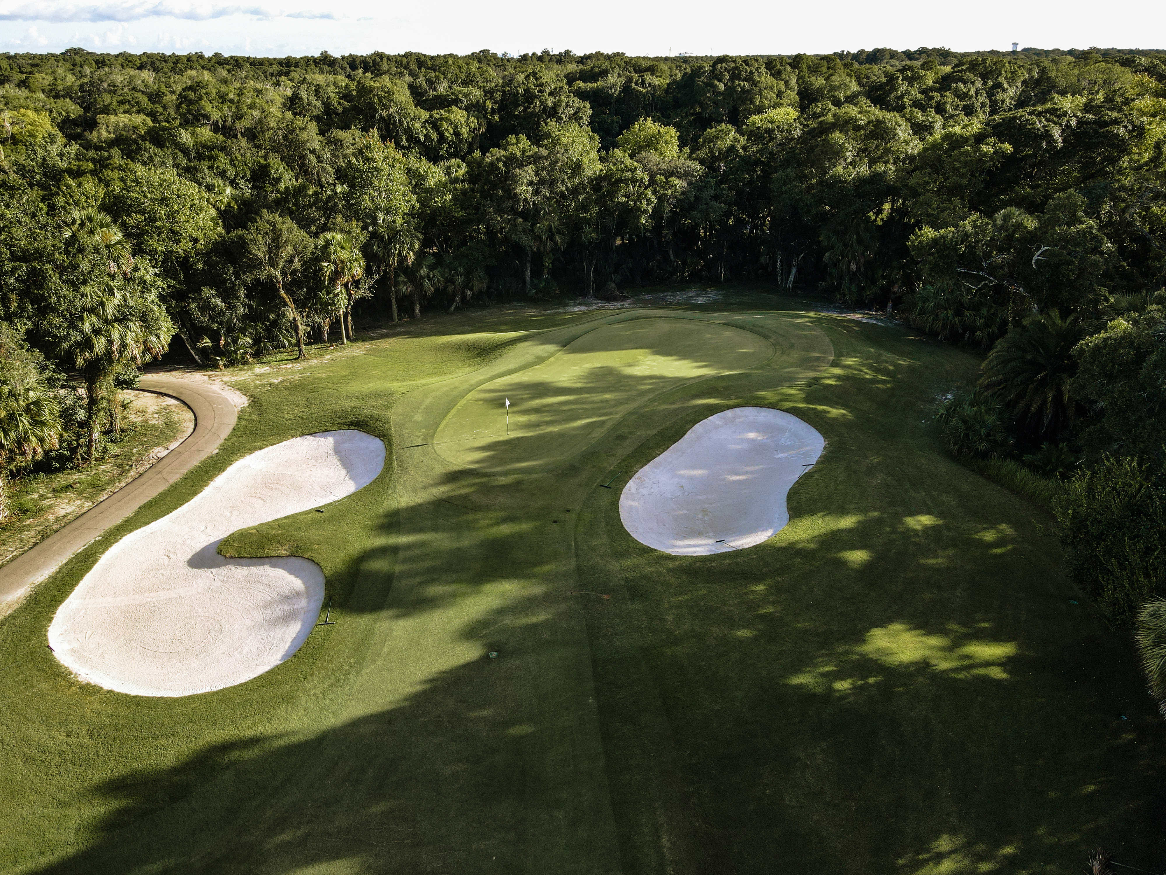 | Although not a long finishing hole, this hole requires two solid shots, both of which must navigate a lake. The lone fairway bunker is your aim point off of the tee. Pick a club to get it as close as you can to this bunker and you will have set yourself up for a short- to mid-iron into a severely sloped green protected by a bunker left and water everywhere else. The approach shot finishing above the hole here will leave you with a speedy downhill putt, so do your best to leave it below the hole. |