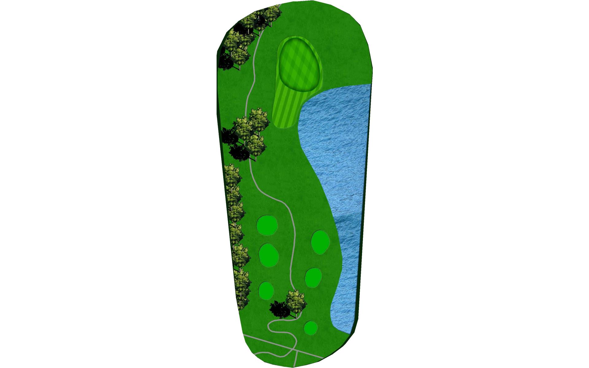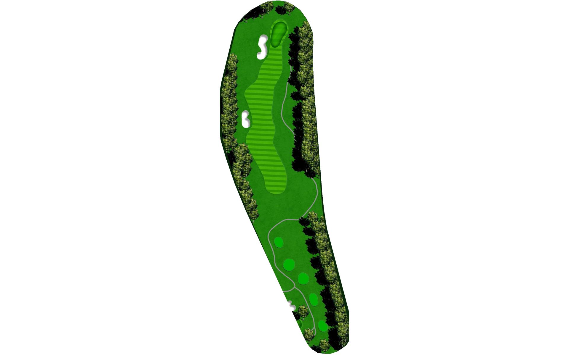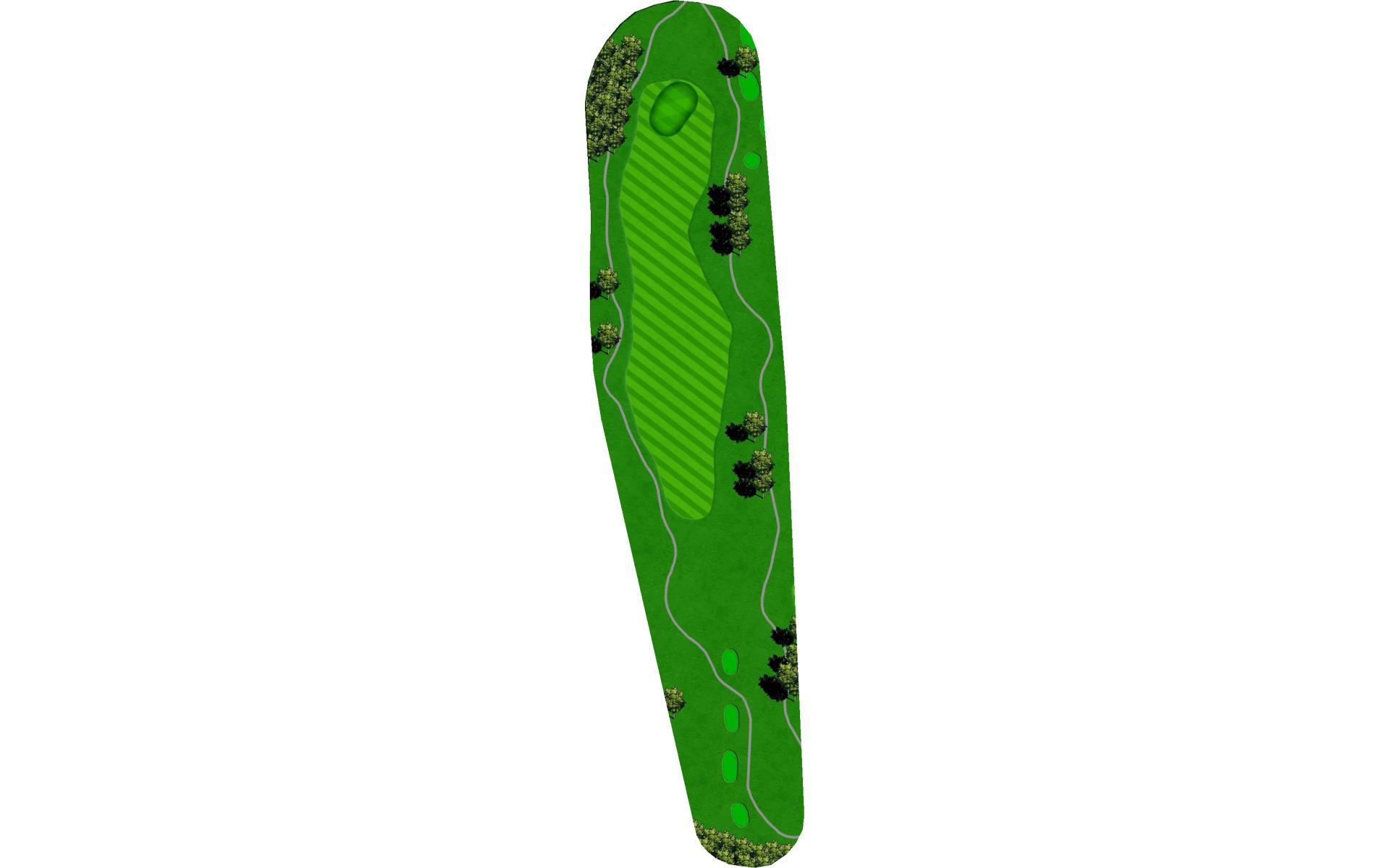 This long uphill Par 3 requires a well struck tee ball. The in the front sits 12 feet below the green and has a large lip; you definitely do not want to be there.