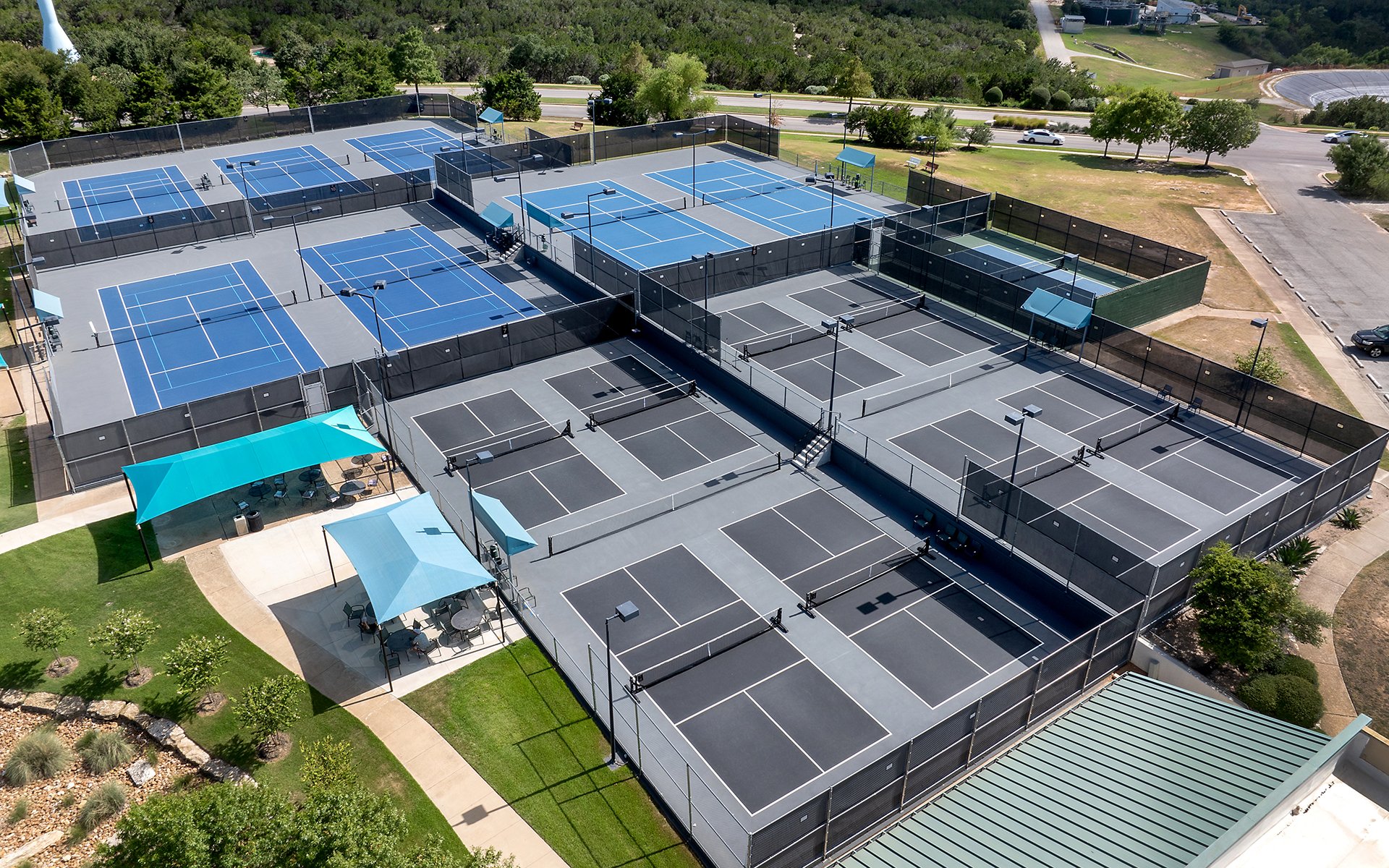 We offer 13 outdoor tennis courts, 2 indoor tennis courts, and 9 pickleball courts, with access to competitive leagues like USTA and daily mixers.
