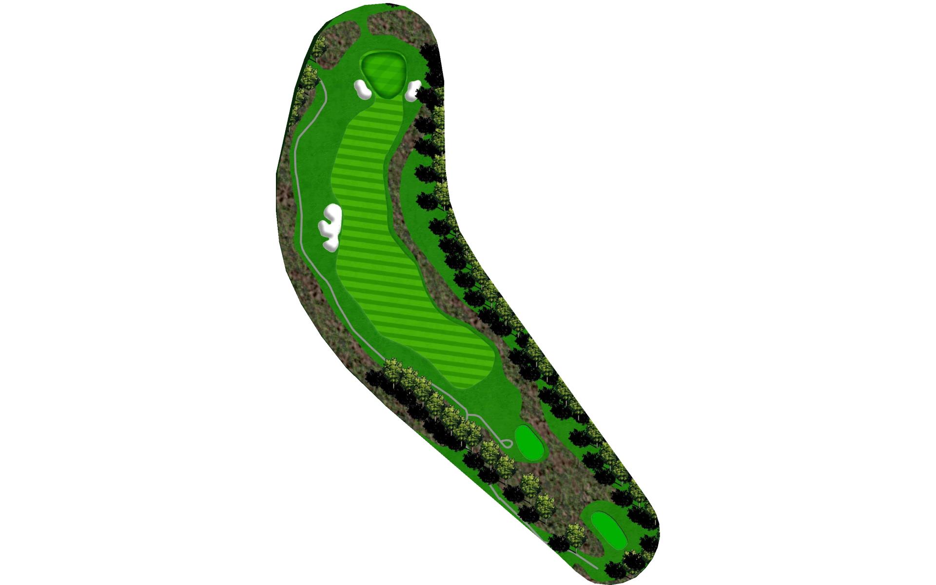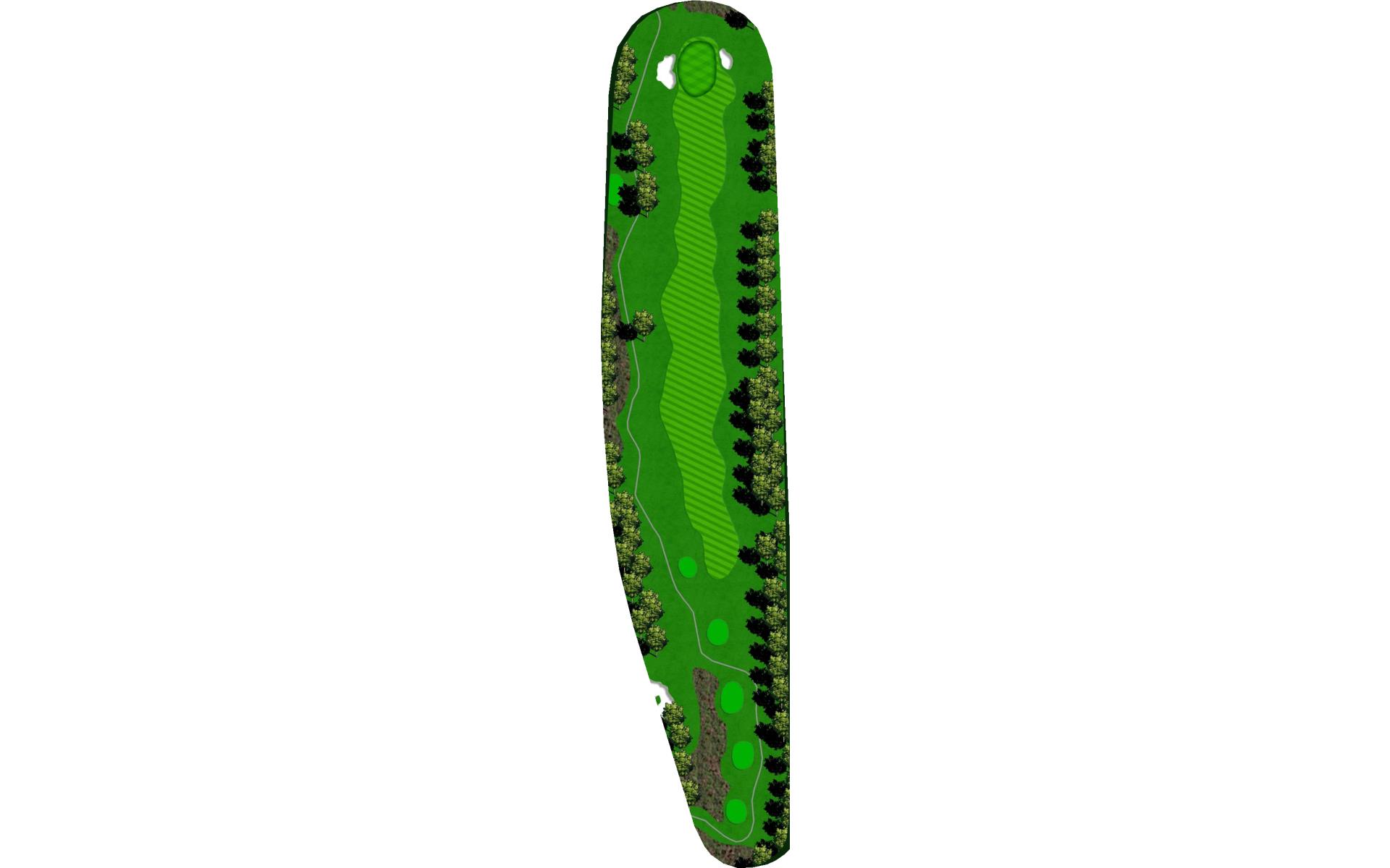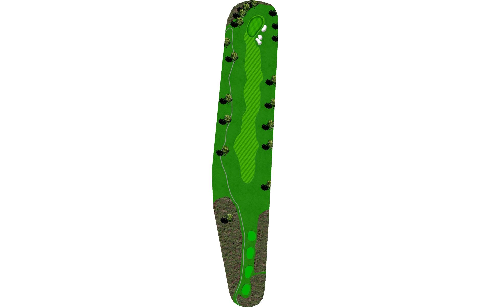 This par 4 is known as the “up and over” hole. Tee shots are played uphill to a fairway plateau that slopes off to the left, right and behind.