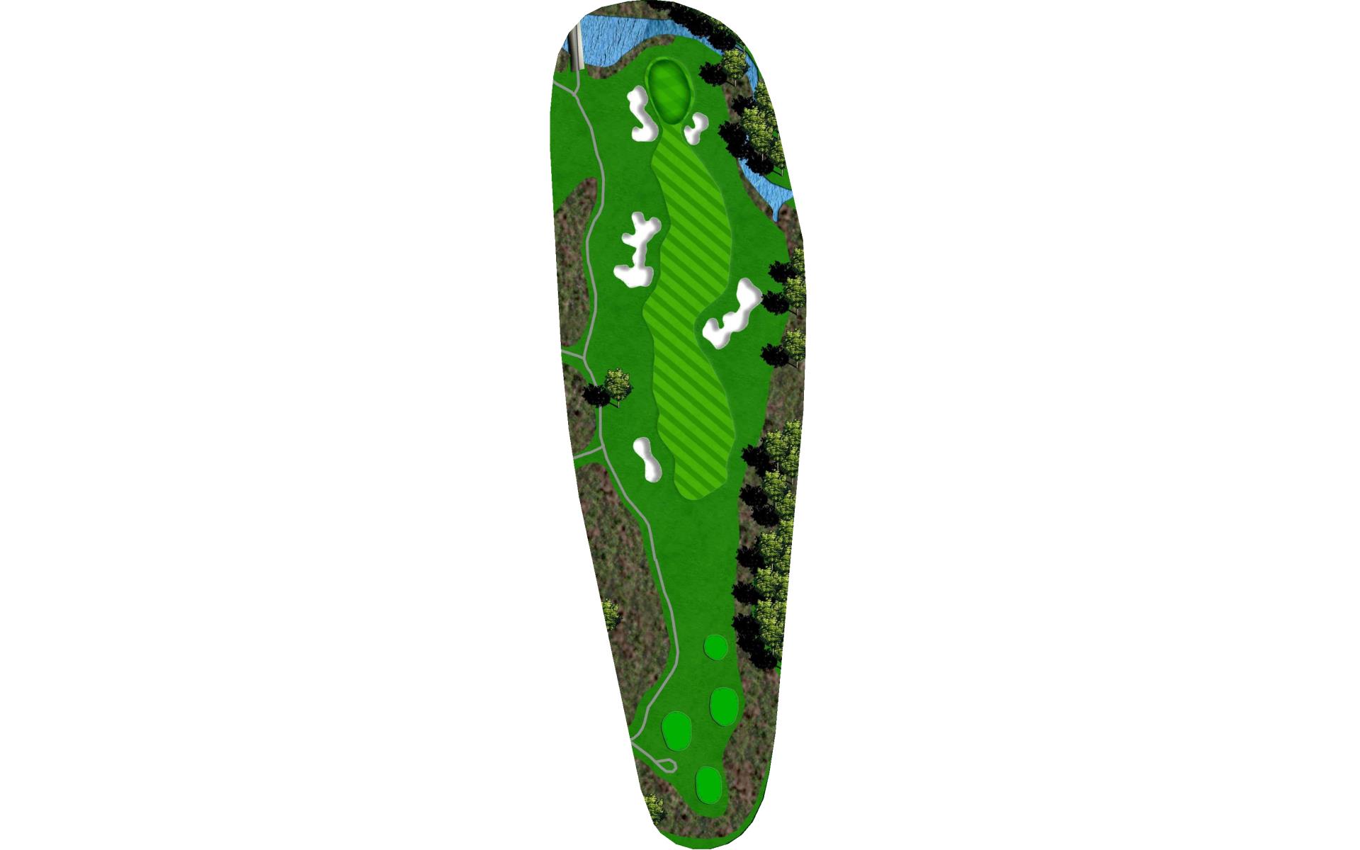 This par 3 is stubbornly guarded by a lake on the right. Bailing out left, away from the water, leaves you to face the anxiety of a difficu…