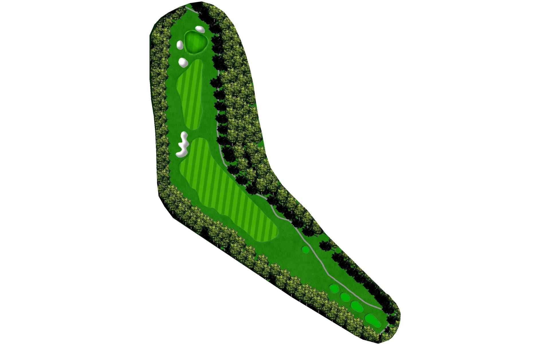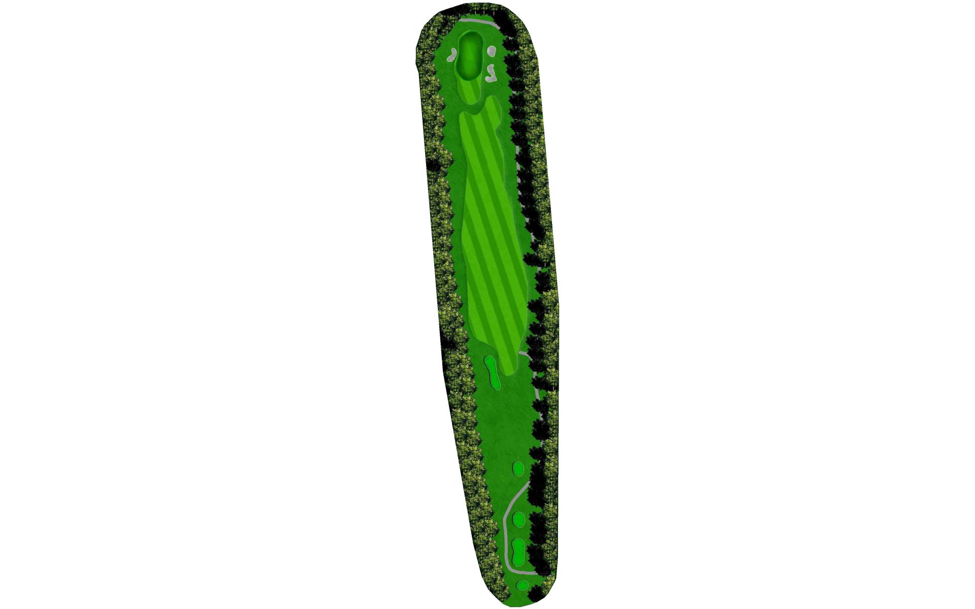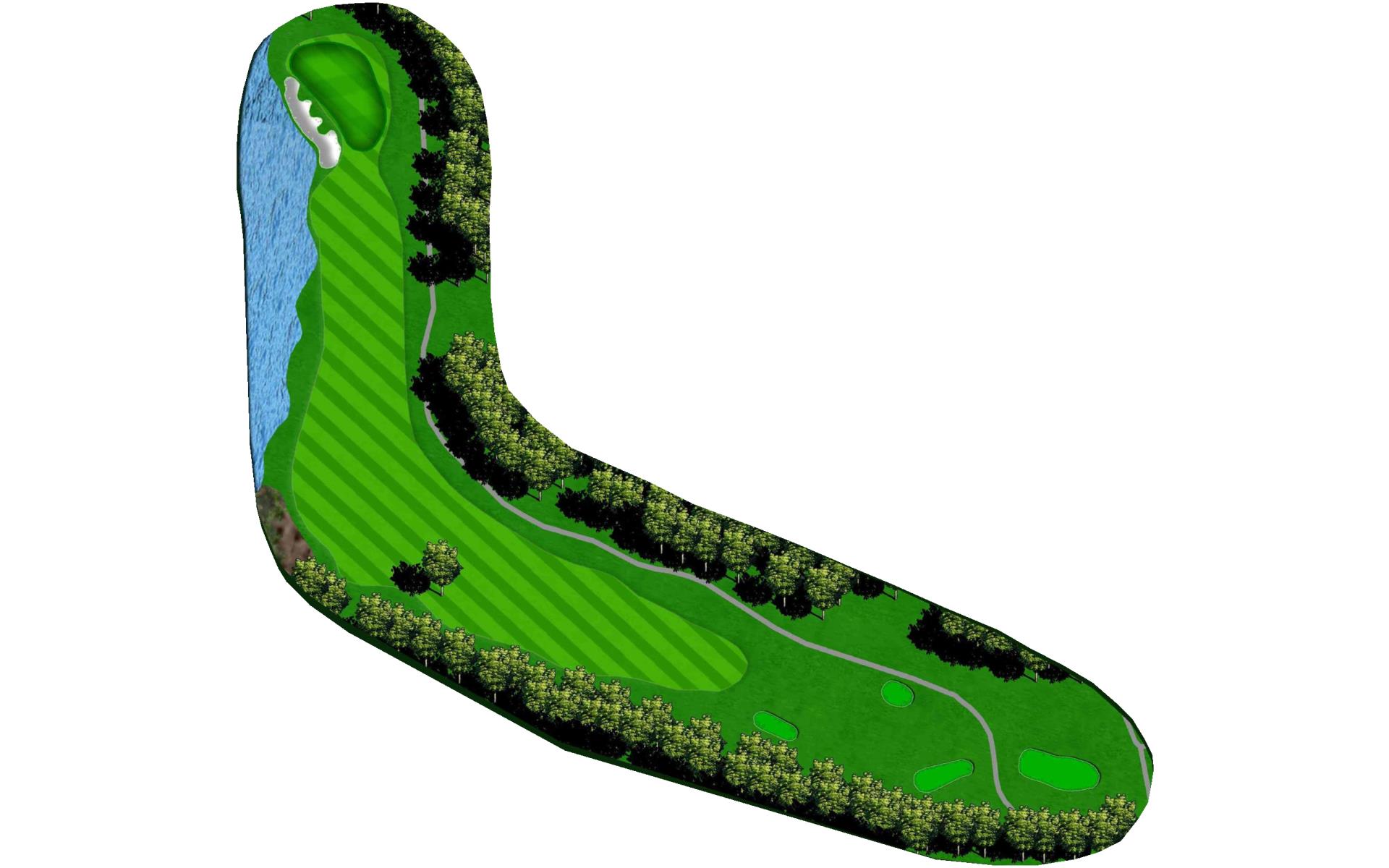 The opening hole is a short par 4 that requires players to hit a blind tee shot over a ridge. Finding the fairway is crucial as it will set up a birdie opportunity. When hitting the approach shot, players must be careful to avoid the pond along the left side of this green that runs away.