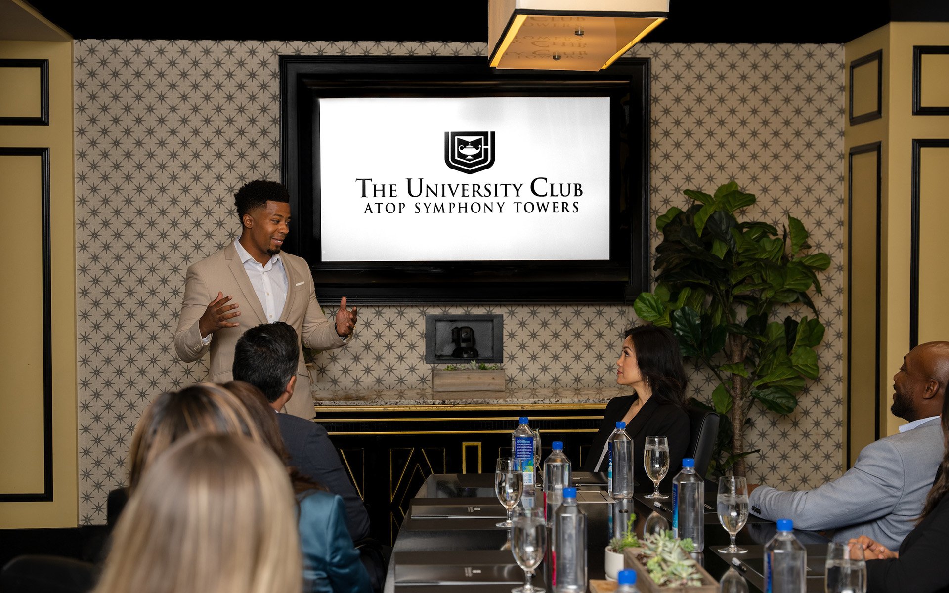 Today, The University Club San Diego is the business and social center of San Diego’s professional elite. Located on the 34th floor of the Symphony Towers, The University Club is in the heart of the San Diego downtown business and cultural community. Symphony Towers, crowned by the Club, houses Copley Symphony Hall at ground level, with a cross-section of the most prestigious business firms of San Diego in between.