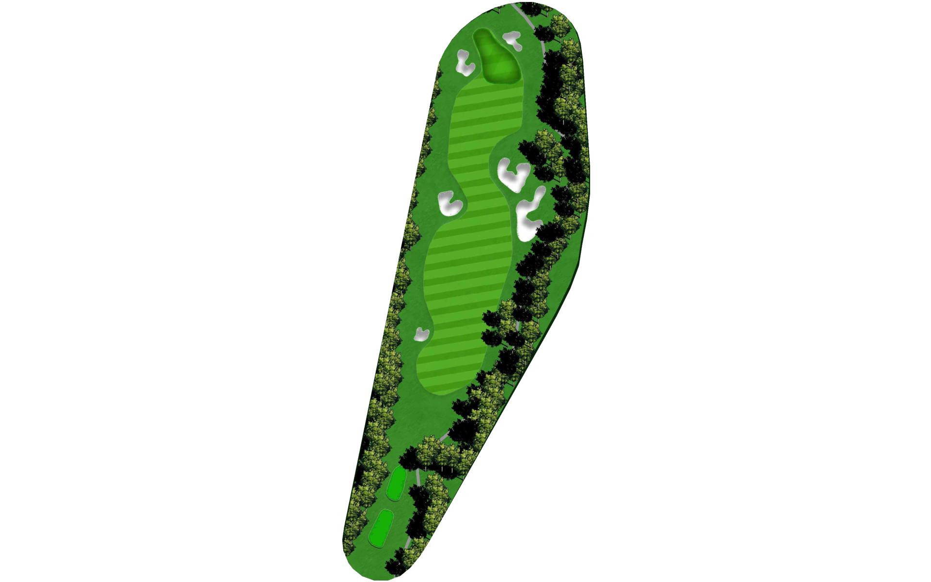This hole is all about the pin position. If the flag is on thr right make sure to keep ypur tee shot to the right of the nig hill in the center of the green. Hit the wrong side of the green and you are almost certainly going to three putt.