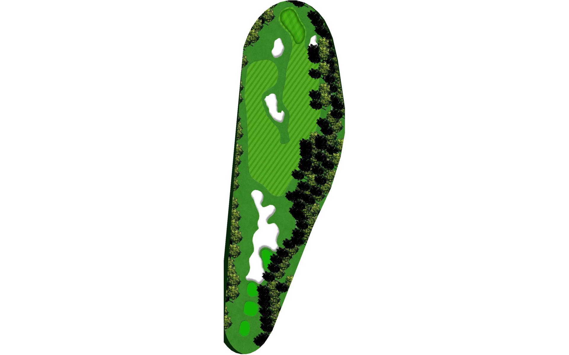 This short par does not need a driver off the tee. Find the fairway with an iron and you put yourself in great shape to hit this green in regulation.