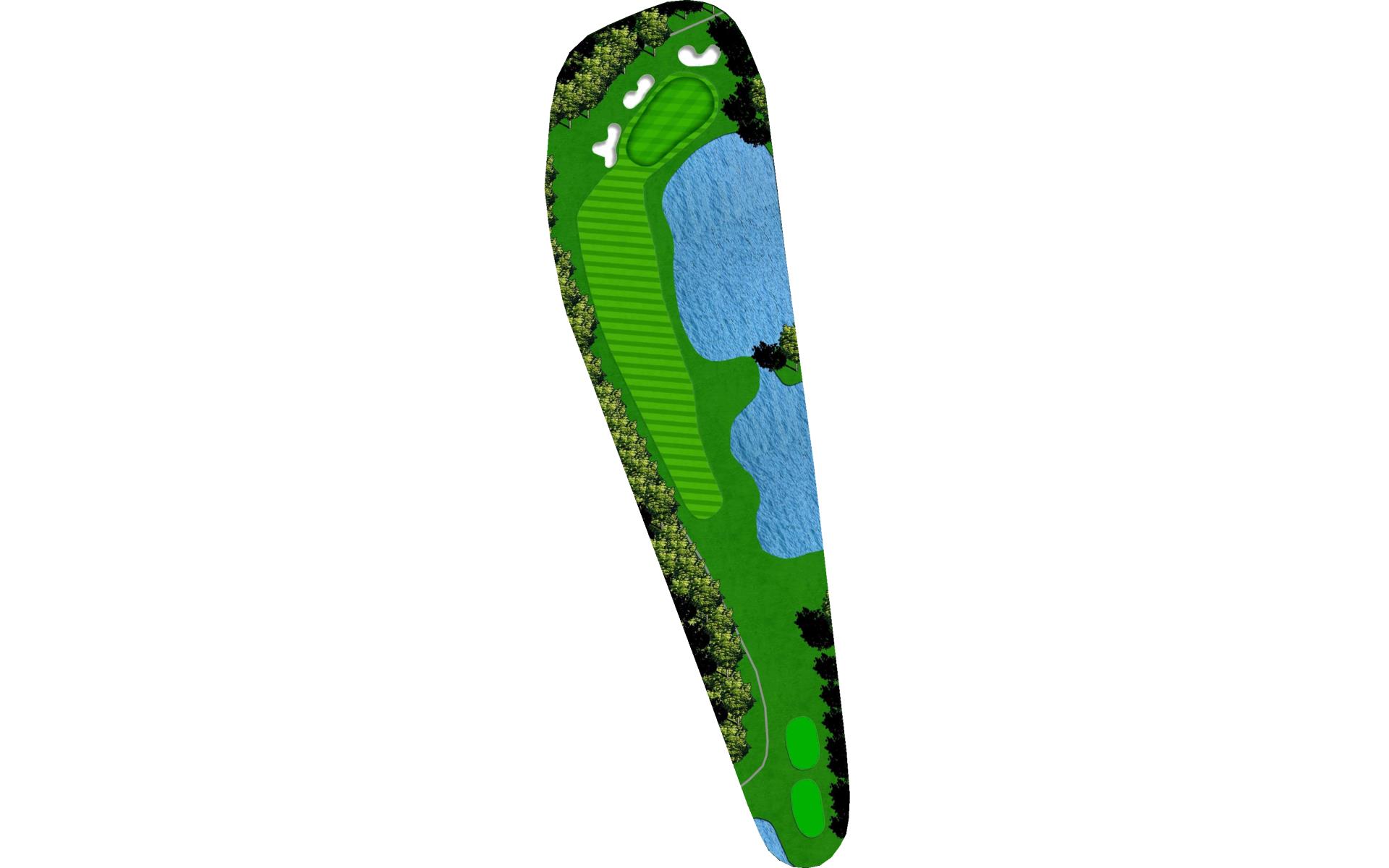 | This short par 4 is a great risk/reward hole, with water right and out of bounds left. A good approach shot will lead to a great score. |