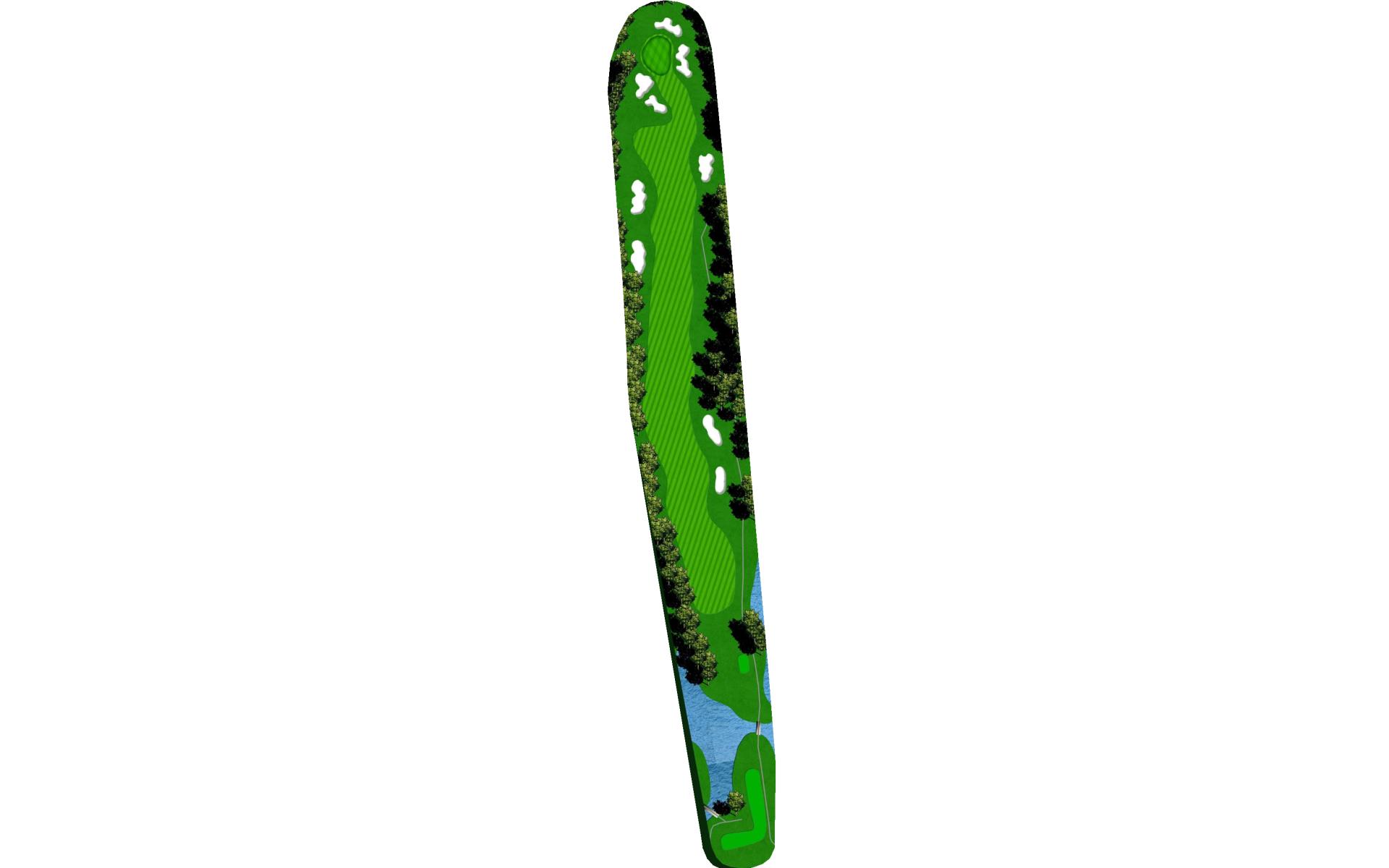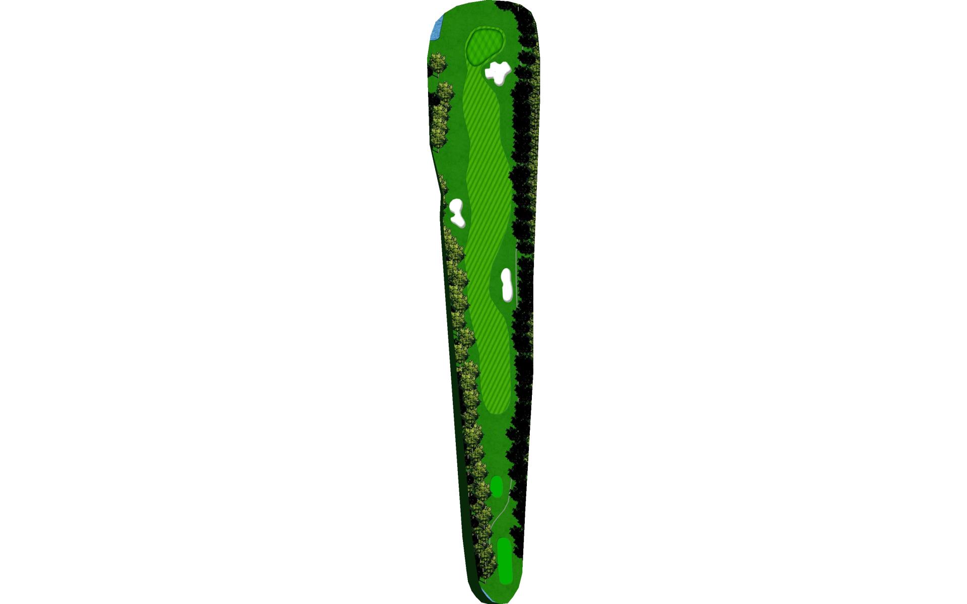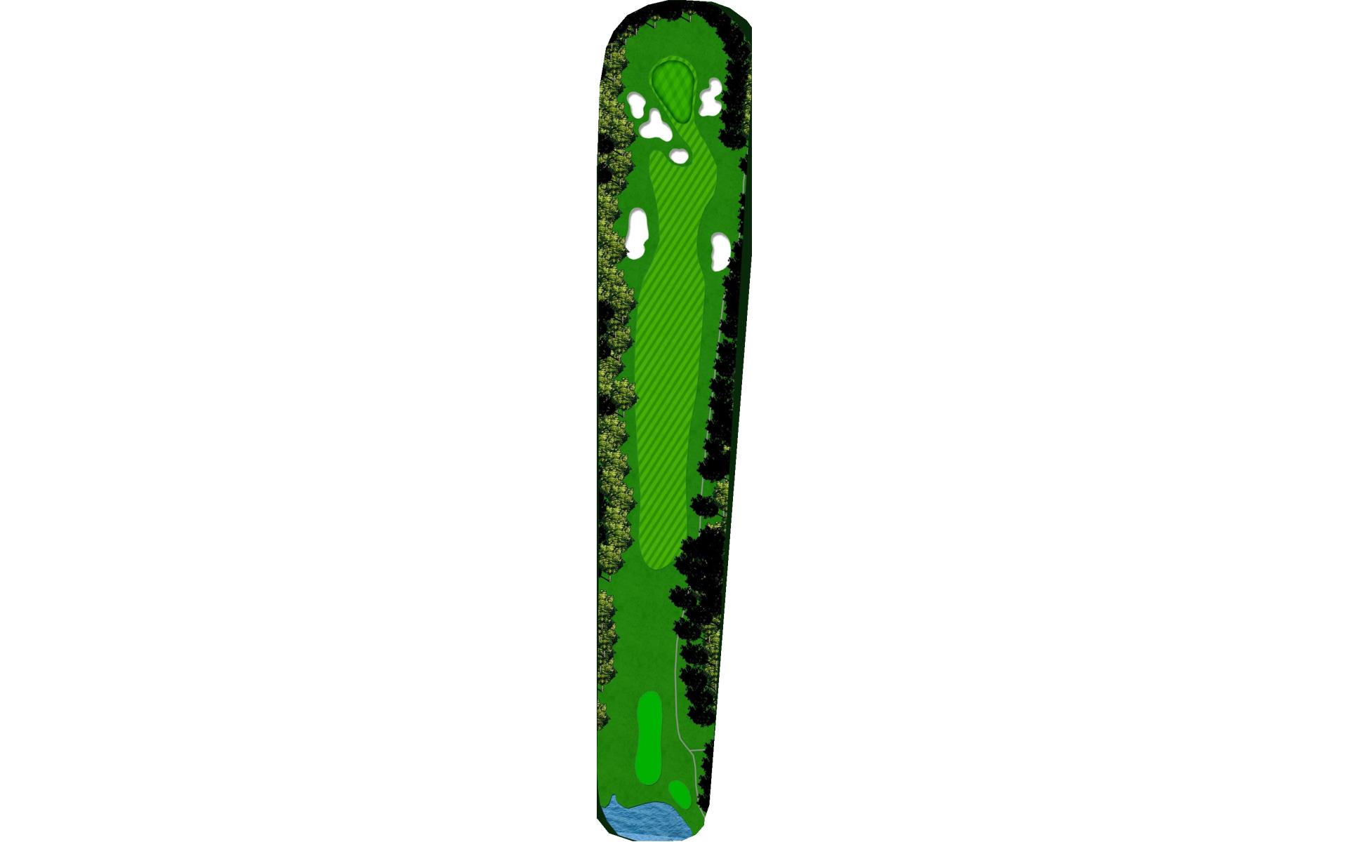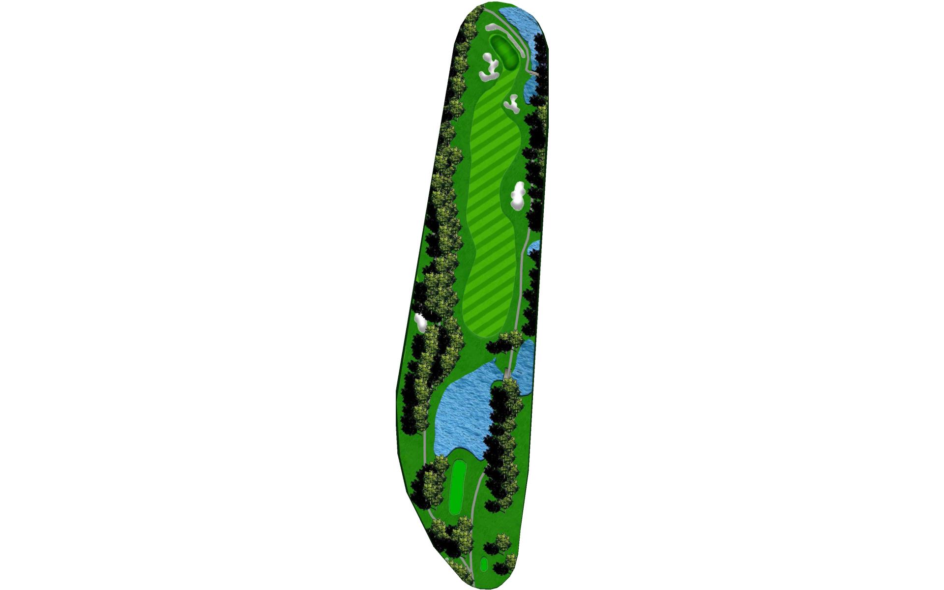 | A very long par 3 with water down right side and bunkers on both the left and right. It is a large green so just keep it straight. |