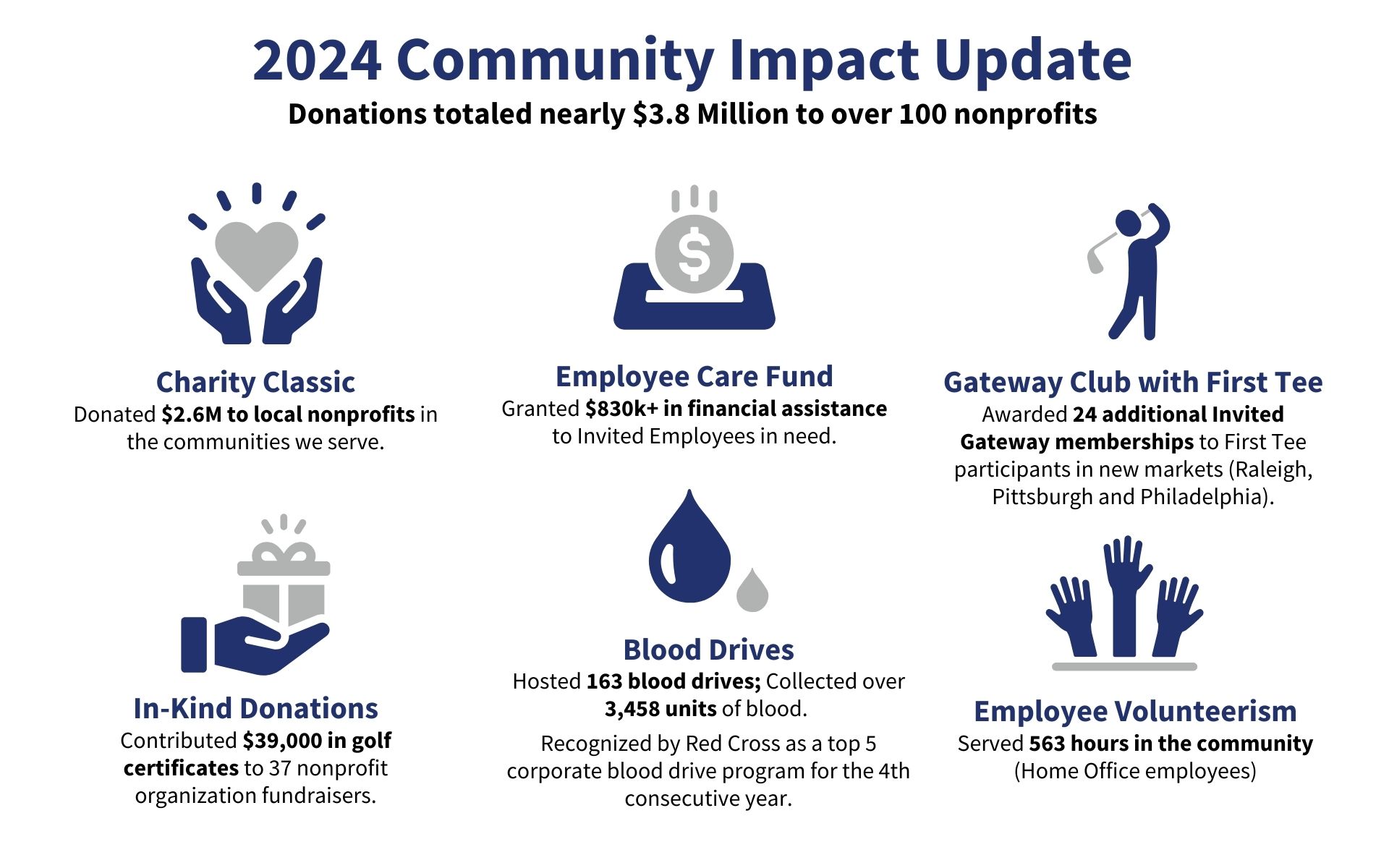We continue to foster a culture of giving that promotes individual well-being, grows the game of golf, and generates positive social impact. Our key programs are focused on supporting our employees, military veterans, and underserved youth in the communities we serve. To further our investment in these key areas, the Invited Scholars educational scholarship fund was launched in 2025, empowering the next generation of leaders by providing access to higher education for eligible employees and their dependent children. Scholarships are also awarded to children of fallen veterans and other high school graduates through selected nonprofit partners.
